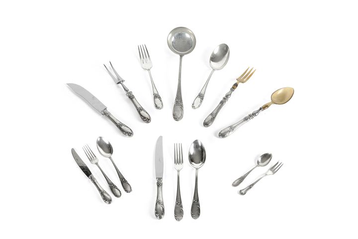 Servizio di posate in argento da dodici persone composto da: