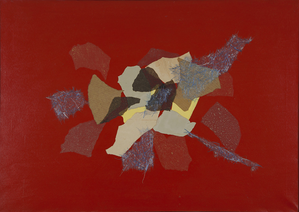 Giulio Turcato Mantova 1912 – Roma 1995) "Collage sul rosso" olio e collage su tela anno 1971 cm 70x100 al retro firma con n. repertorio + etichetta Galleria Don Chisciotte - Roma Archivio Giulio Turcato