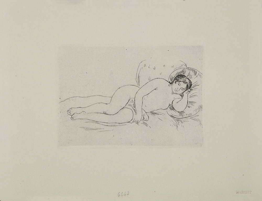 Pierre-Auguste Renoir Limoges 1841 – Cagnes-sur-Mer 1919 "Femme nue couchée" acquaforte cm 25,7x34 in basso a destra dicitura a secco MAEGHT (Fondazione)