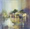 Sergio Caimi Ceriano Laghetto 1950 "Colori nel paesaggio" olio su tela anno 2011 cm 70x70 firmato in basso a destra al retro: firma e anno