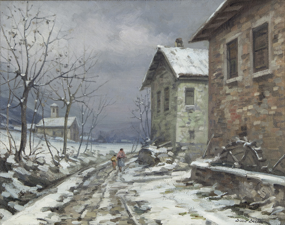 Dino Decca 1935 - 1999 "Inverso verso Caino" olio su tela cm 40x50 firmato in basso a destro al retro: titolo e firma