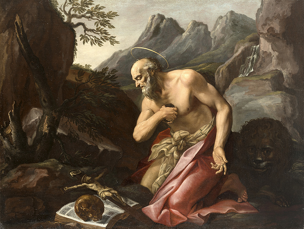 Maestro del secolo XVIISan GerolamoOlio su tela cm 97x134In cornice in legno...