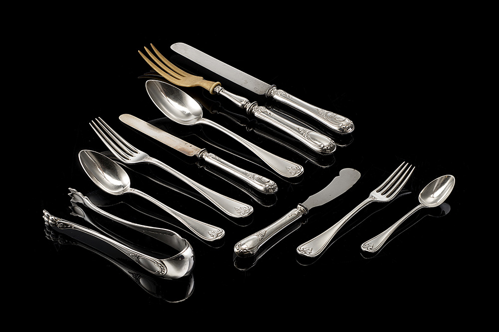 A silver flatware set. Italy, end of the 19th Century (g 6400 ca.) (defects)