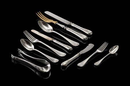 Servizio di posate in argento composto da trenta forchette, venticinque...