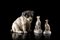 Lot comprising three biscuit and ceramic sculptures of dogs (defects)