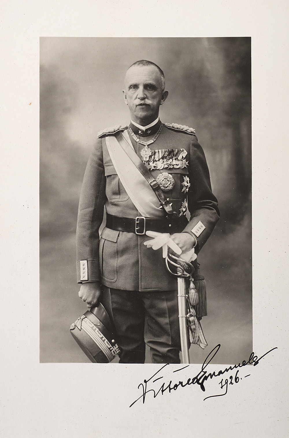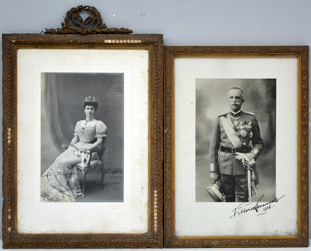 A couple of autographed photographic portraits in gilt frames of King Vittorio Emanuele III and Queen Elena.