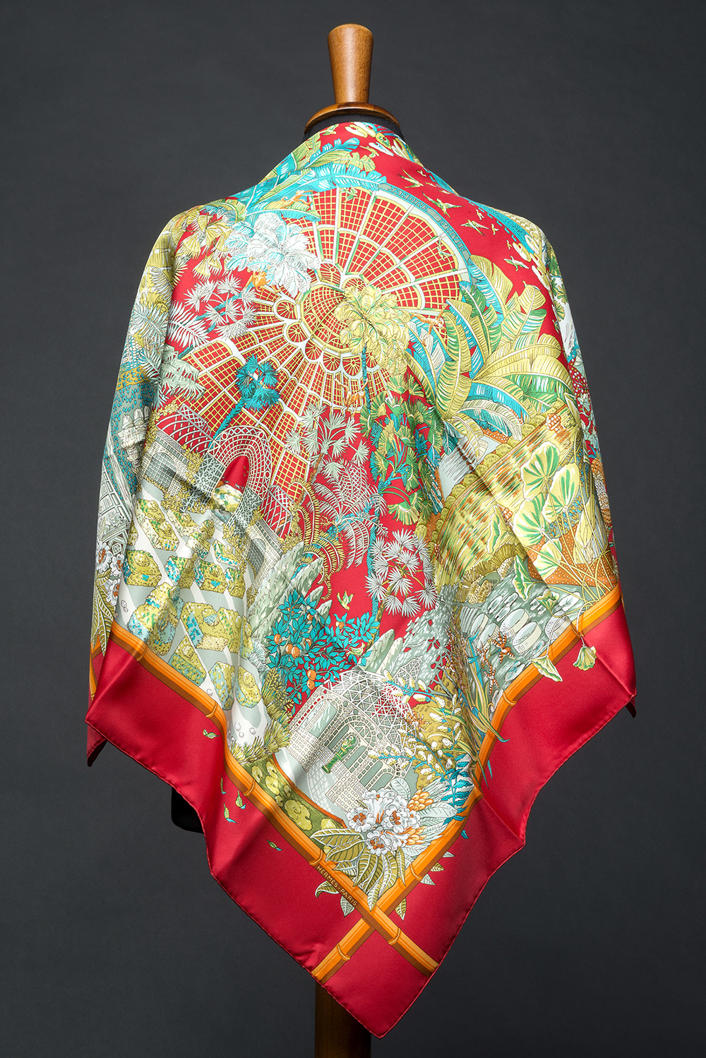 HERMESFoulard in seta "Jardin d'Hiver", Annie Faivre 2007, nei toni del verde...