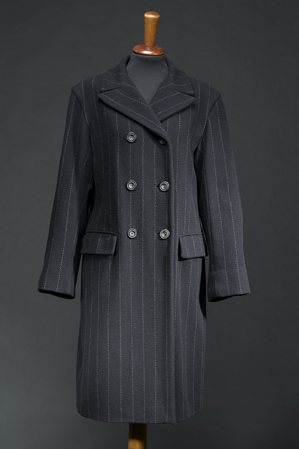 Cappotto gessato, sciancrato, doppio petto in lana e cachemere (tg. 38 francese)