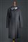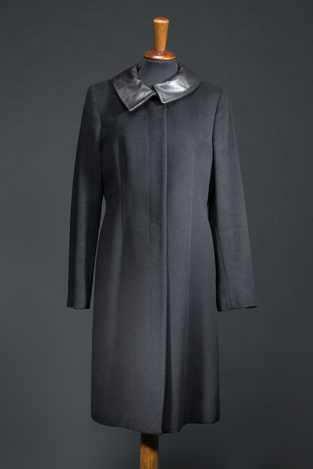 Cappotto in lana nera con collo ad inserto in pelle (tg. 42)