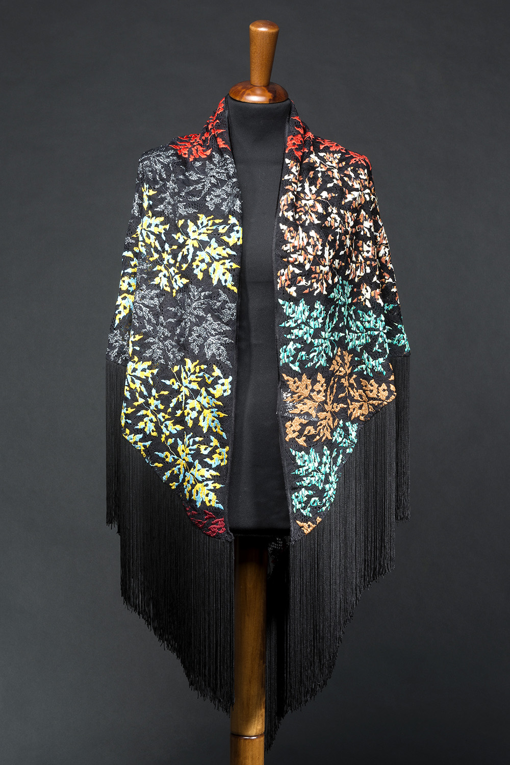 Lot 97 | MISSONI Scialle a triangolo multicolor su fondo nero con lunghe frange,...
