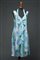Abito da cocktail con volant in chiffon sul davanti nei toni del verde, turchese e rosa (tg. 44)