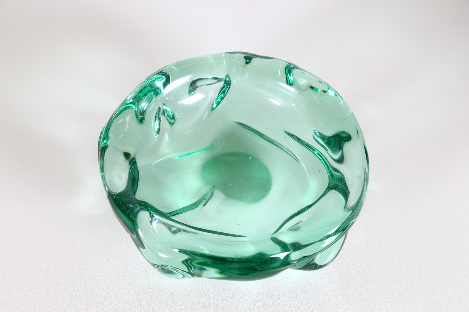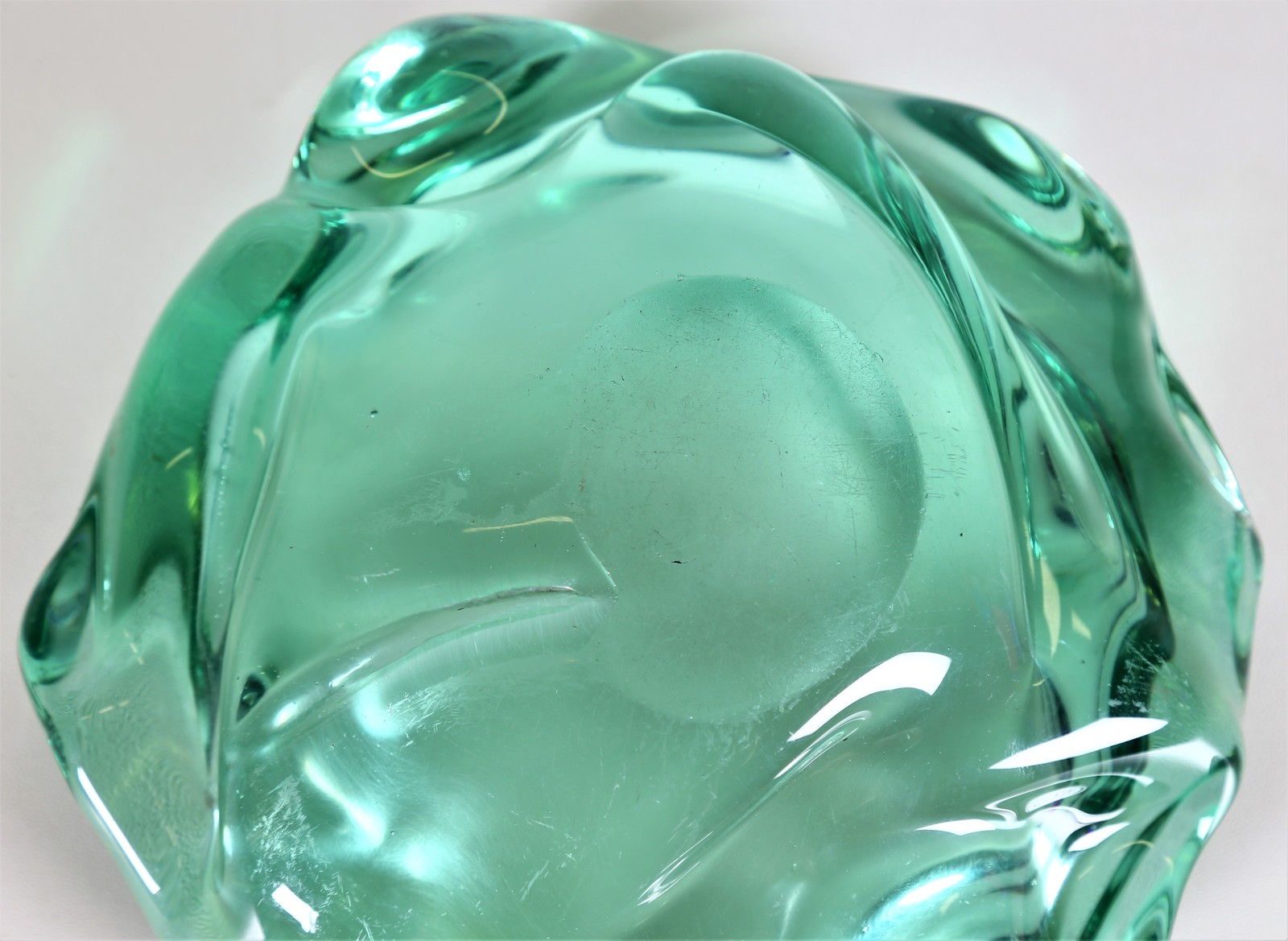 FONTANA ARTE Nile green crystal bowl, 1950s. . Cm 23,00 x 8,00 x 23,00.