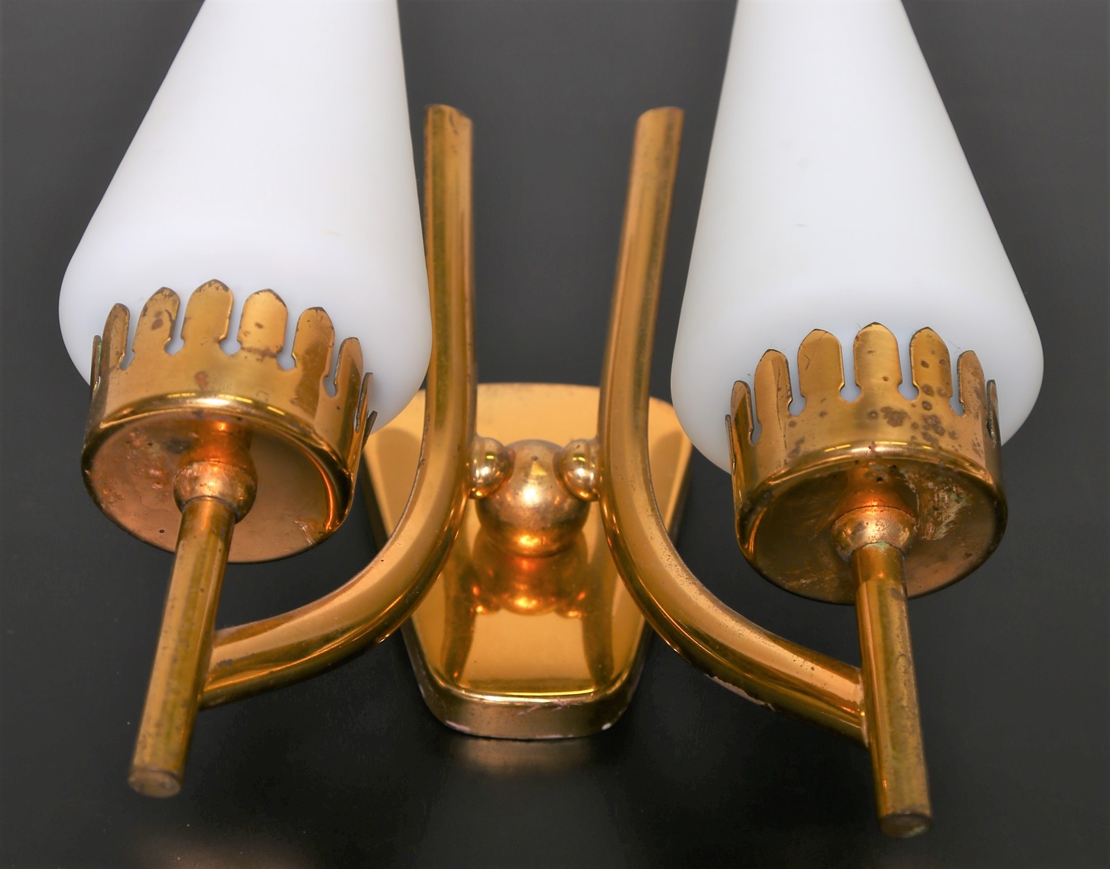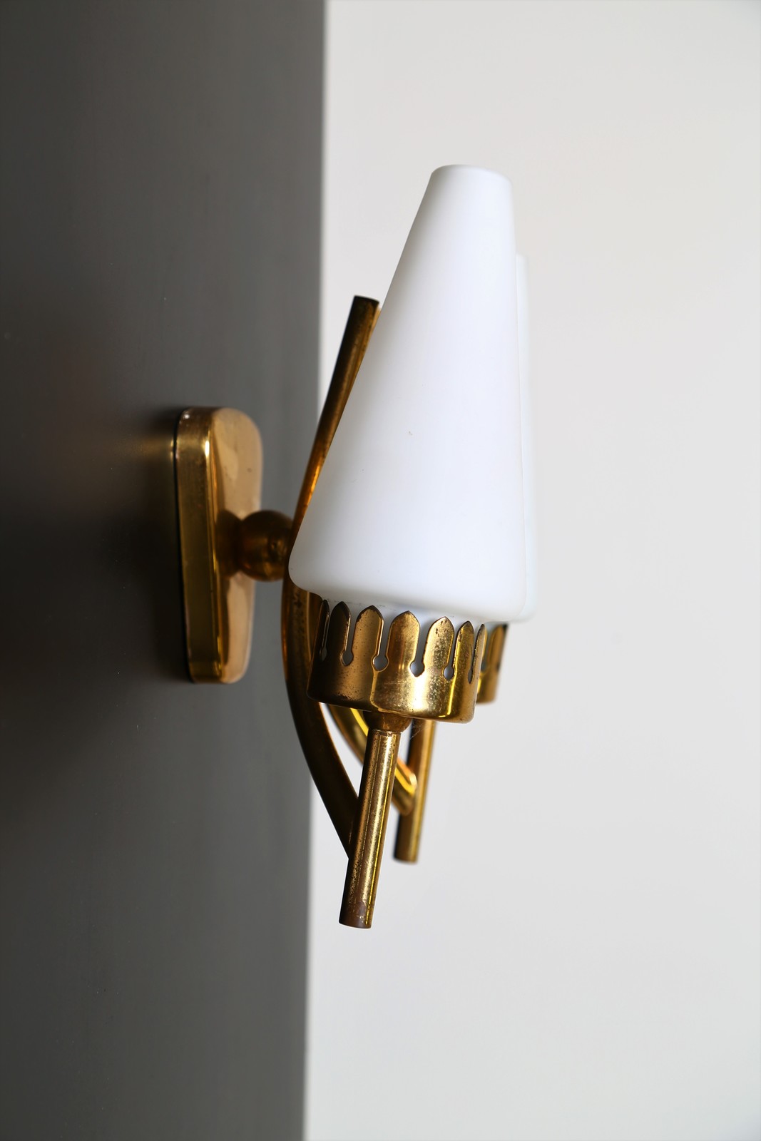 MANIFATTURA ITALIANA Quattro applique in ottone e vetro satinato, anni 50. -. Cm 21,00 x 23,00 x 11,00.