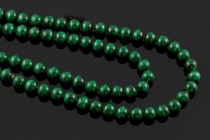 Collana composta da boules di malachite, chiusura in oro giallo