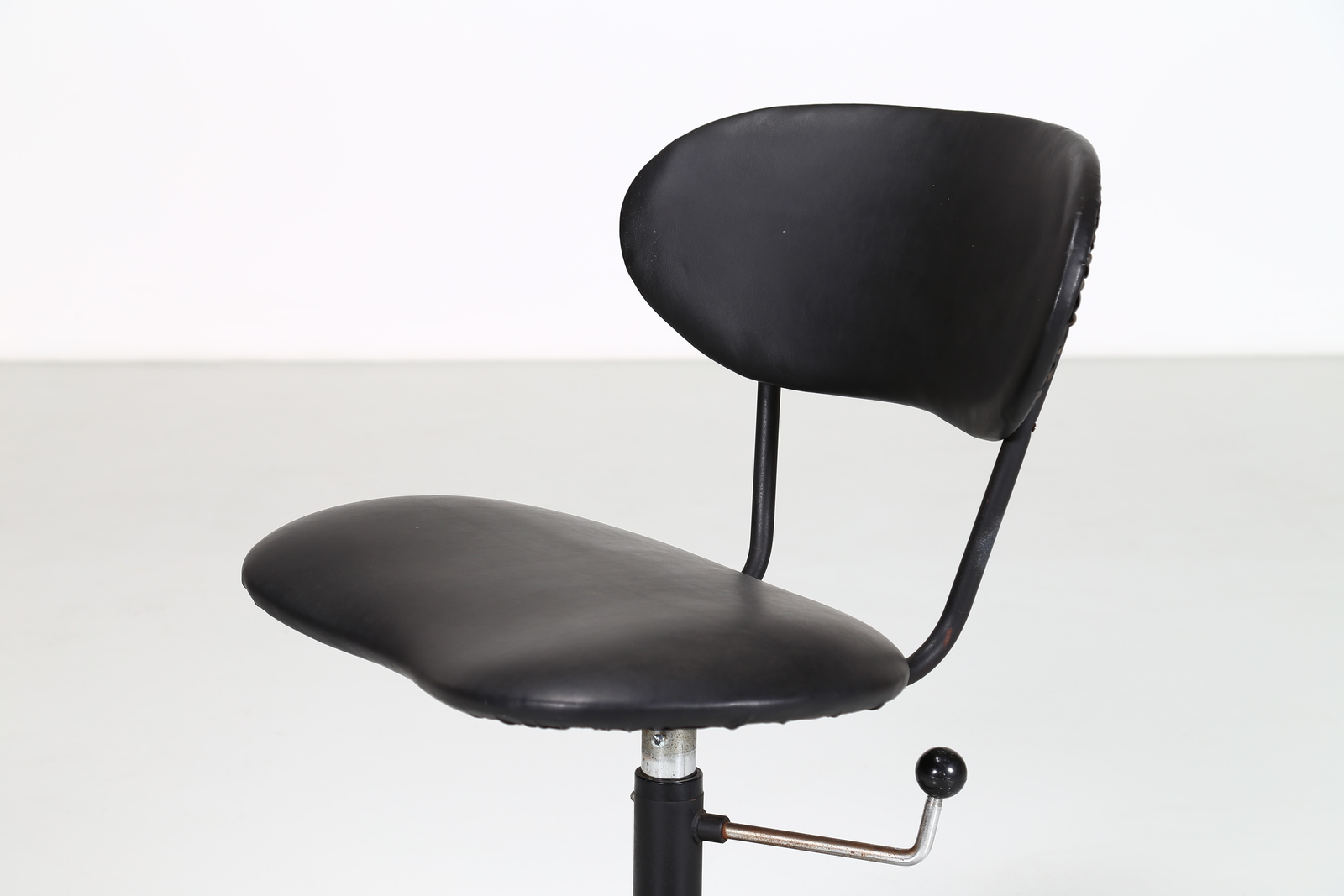 ITALIAN MANUFACTURE Lacquered metal, steel and skai swivel chair . . Cm 55,00 x 79,00 x 55,00.