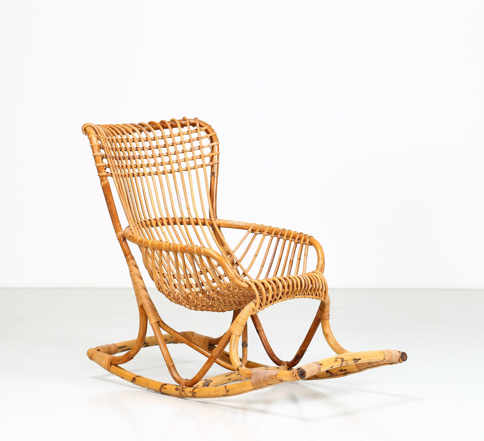 BONACINA 1889 Wicker rocking chair, 1960s . . Cm 70,00 x 98,00 x 125,00.