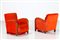 MANIFATTURA ITALIANA Coppia di poltrone in legno e tessuto originale, anni...