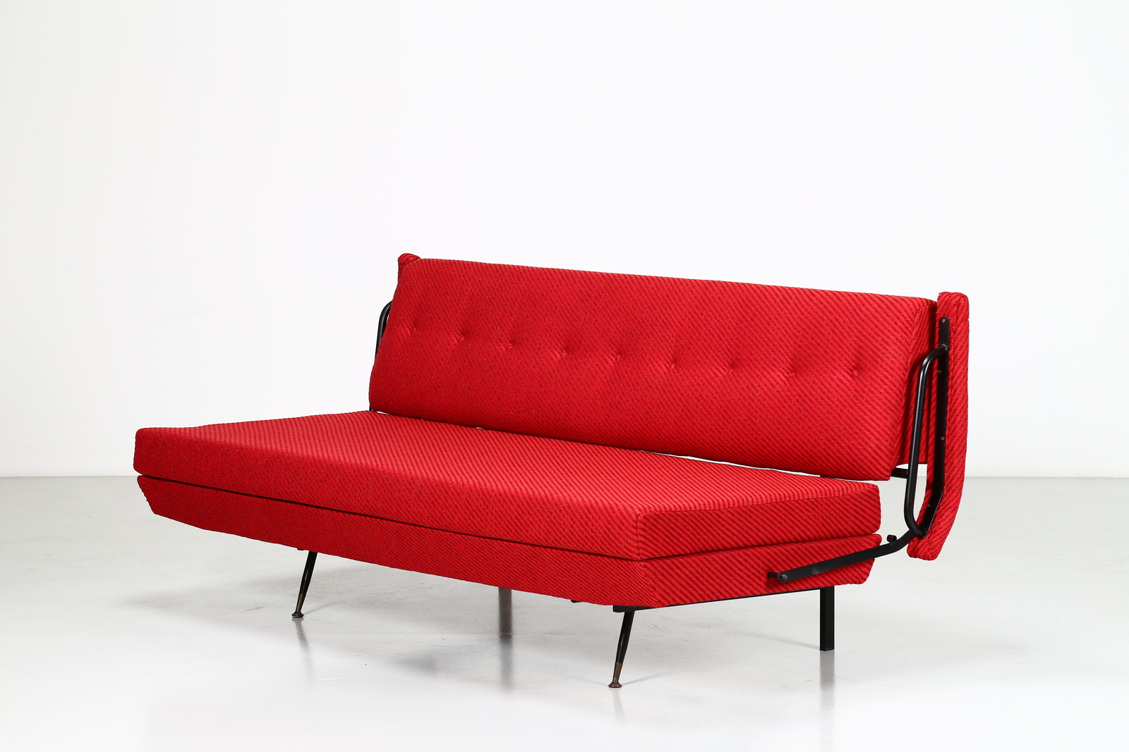 MANIFATTURA ITALIANA Divano letto in metallo laccato e tessuto, anni 60. -....