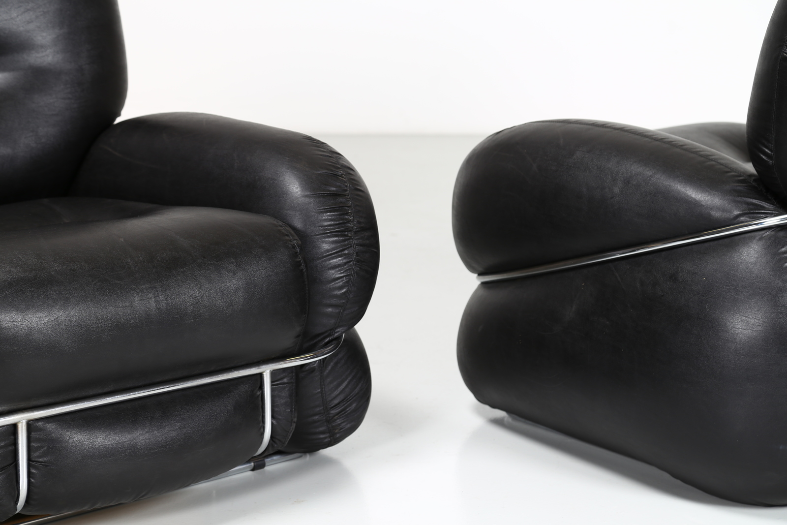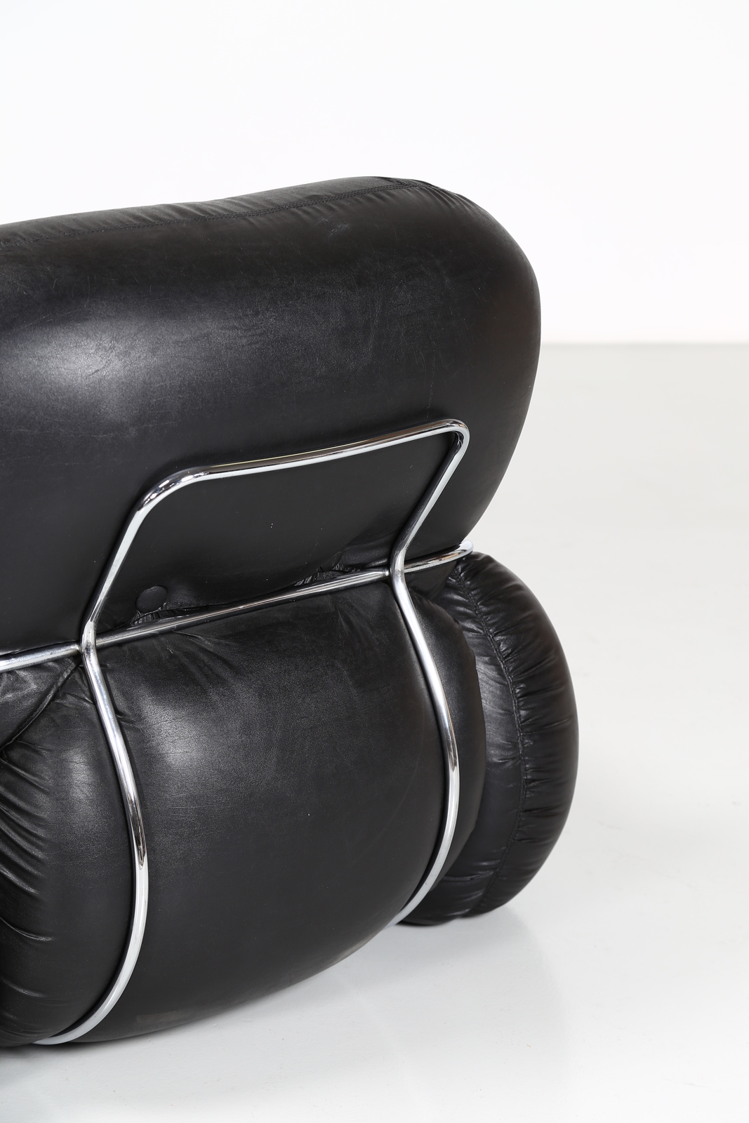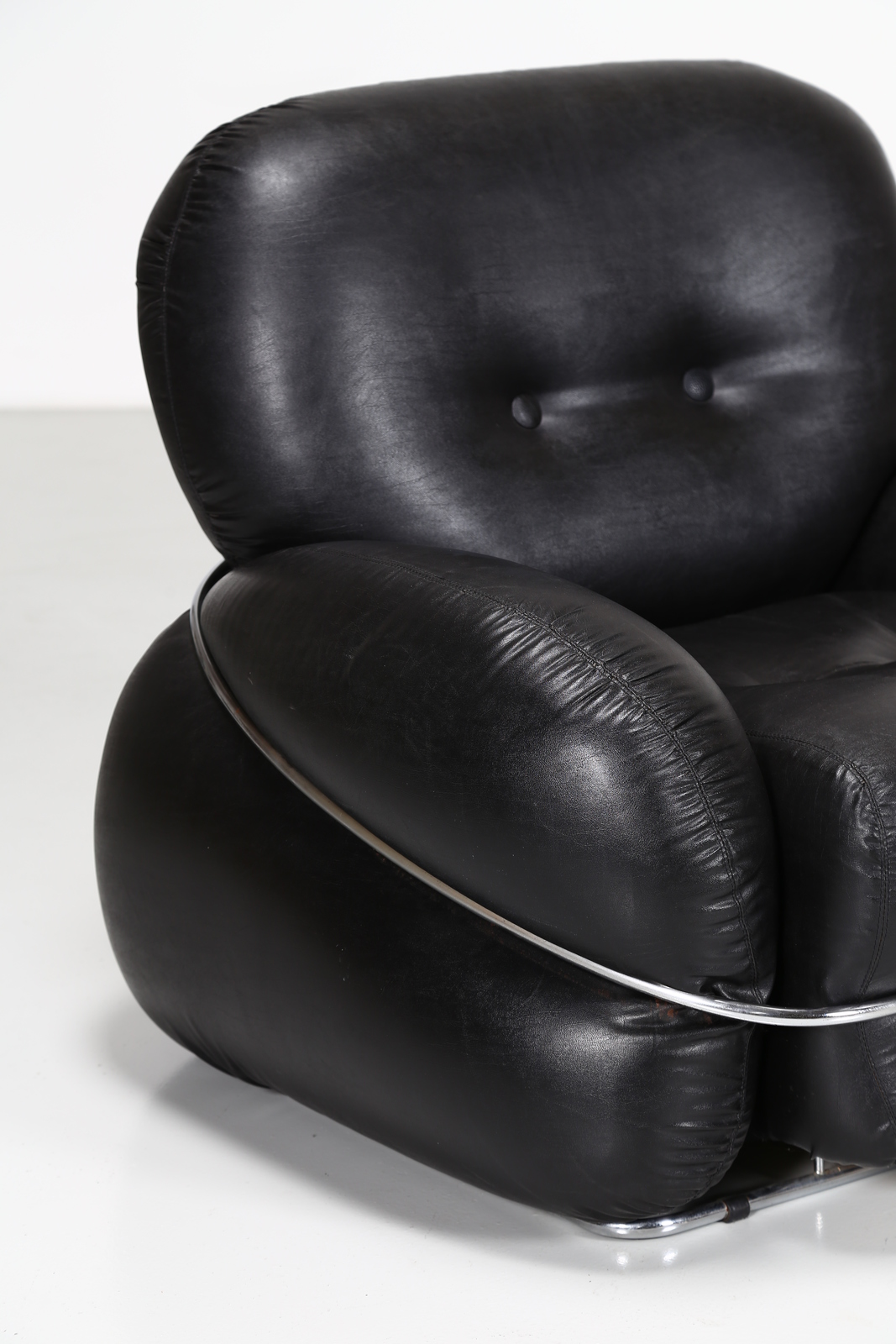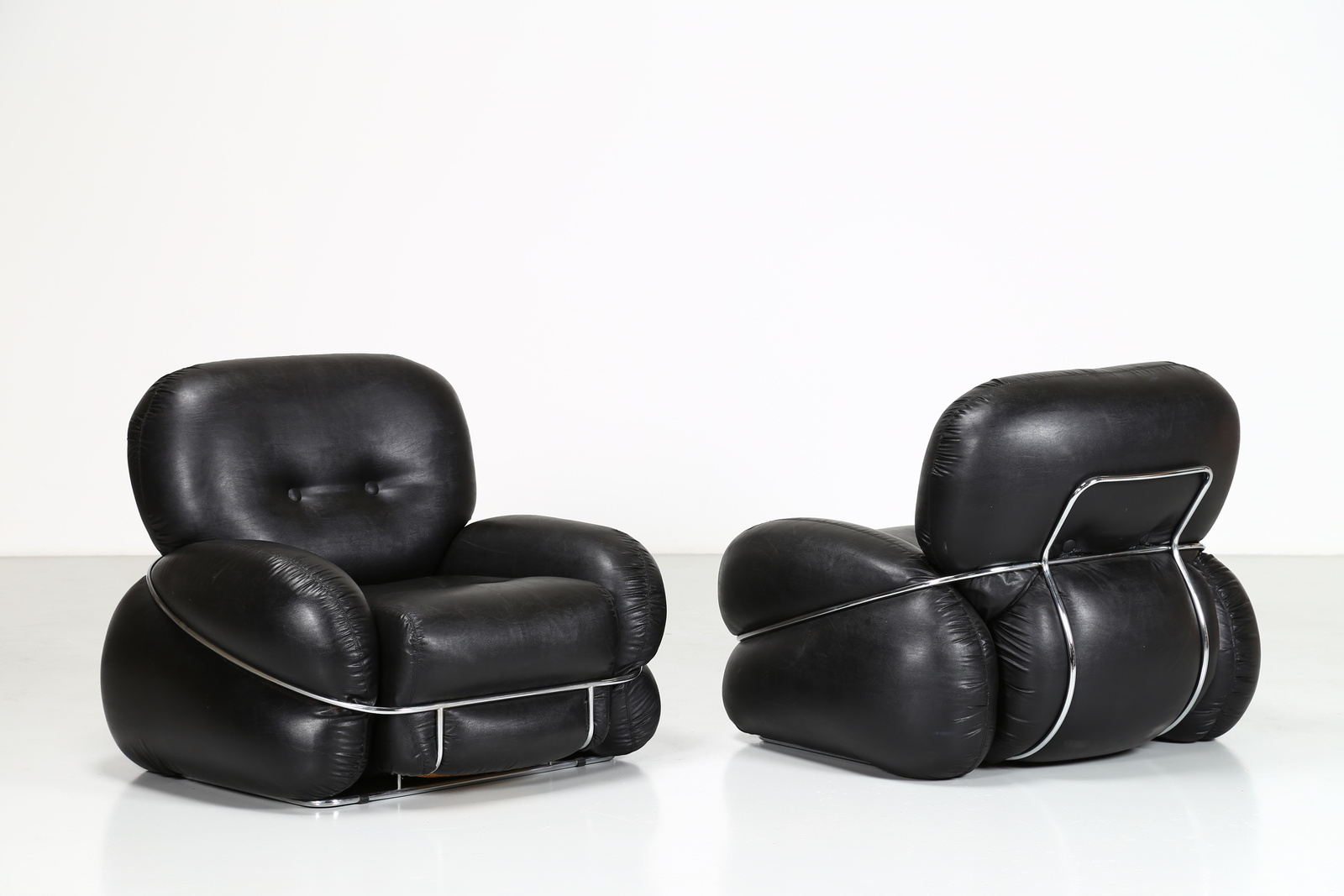 PIAZZESI ADRIANO Pair of chromed metal and skai armchairs, mod. Okay for TRE D Firenze, 1972.