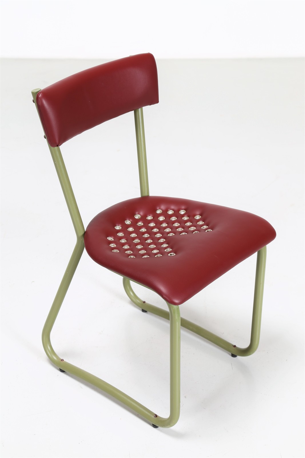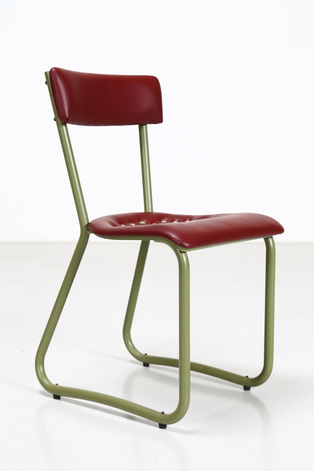 PONTI GIO' (1891 - 1979) Aluminium and skai chair, for Uffici Montecatini. Expertise available curated by Salvatore Licitra Archives Gio Ponti Milan. . Cm 44,00 x 84,00 x 50,00.