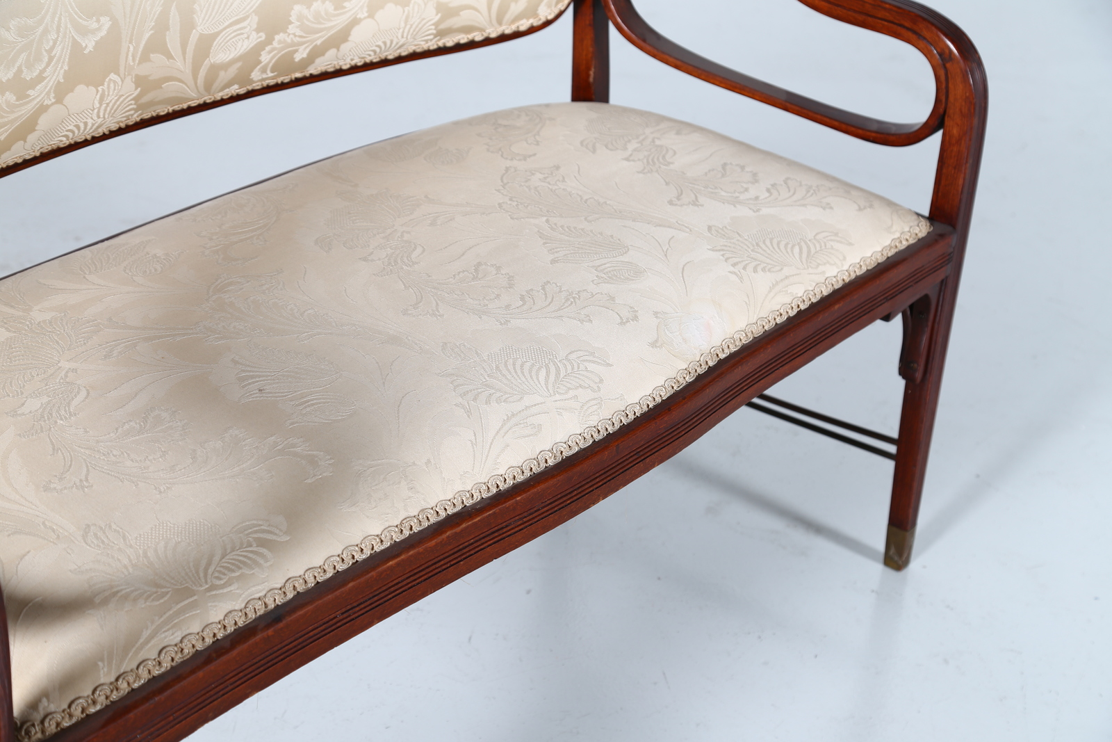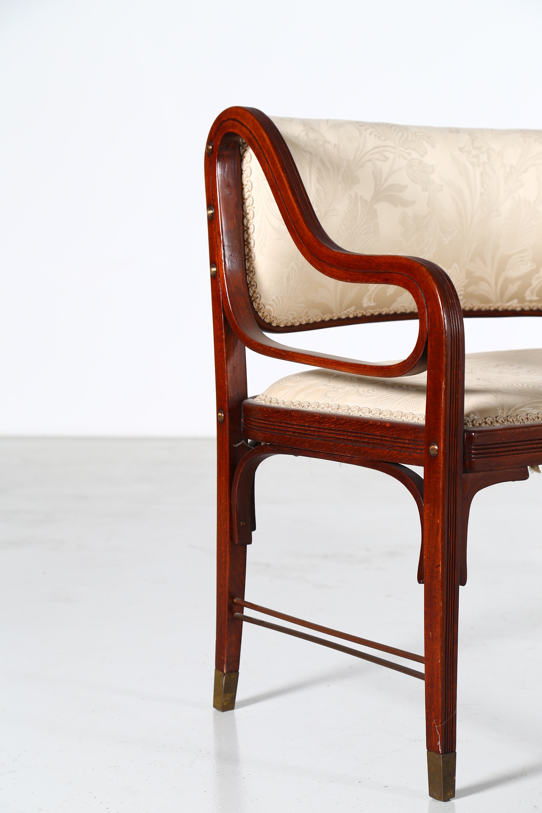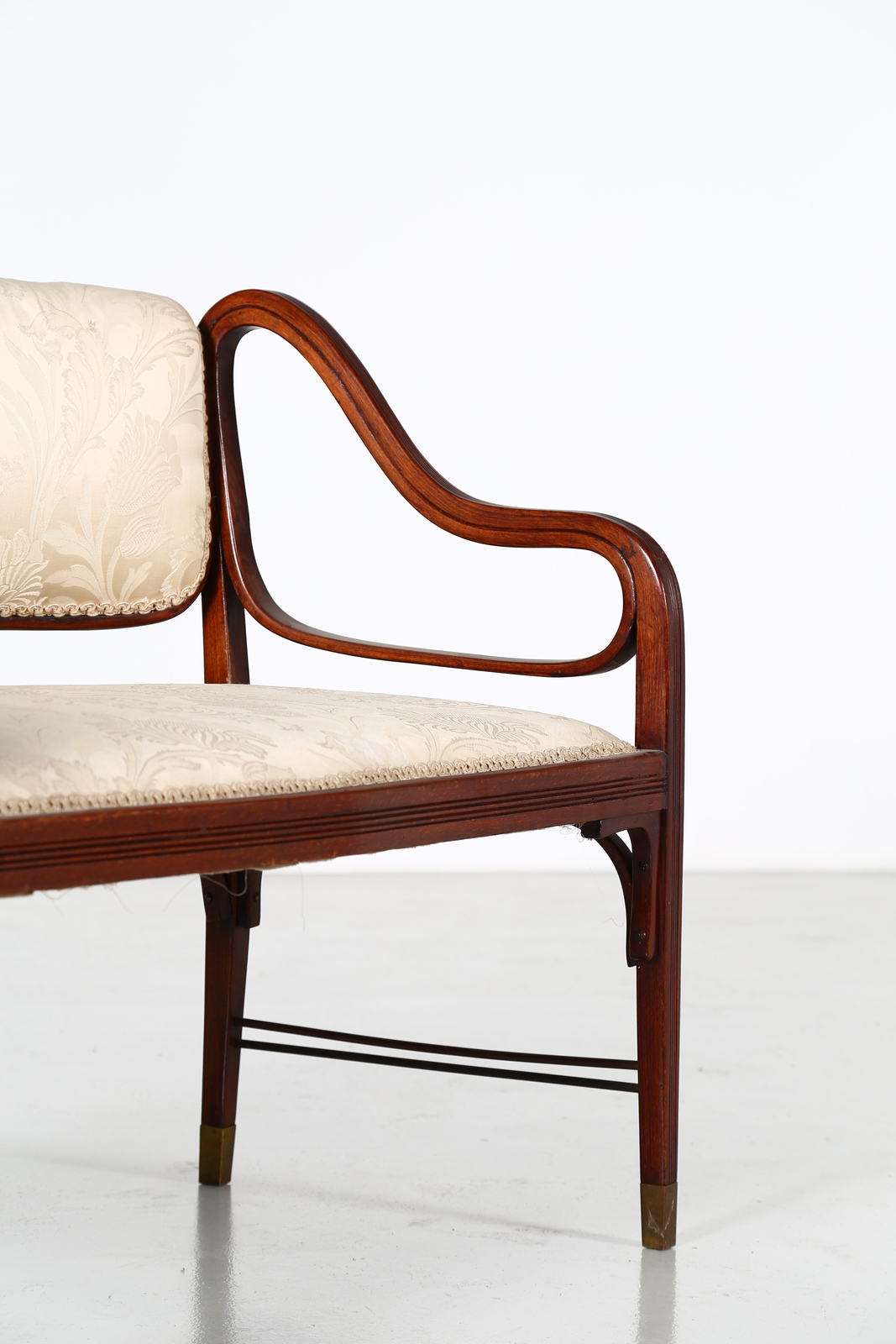 SIEGEL GUSTAV (1880 - 1970) Two-seater wood and fabric sofa, for Märkt JJ Kohn, early 1900s. . Cm 117,00 x 80,00 x 58,00.