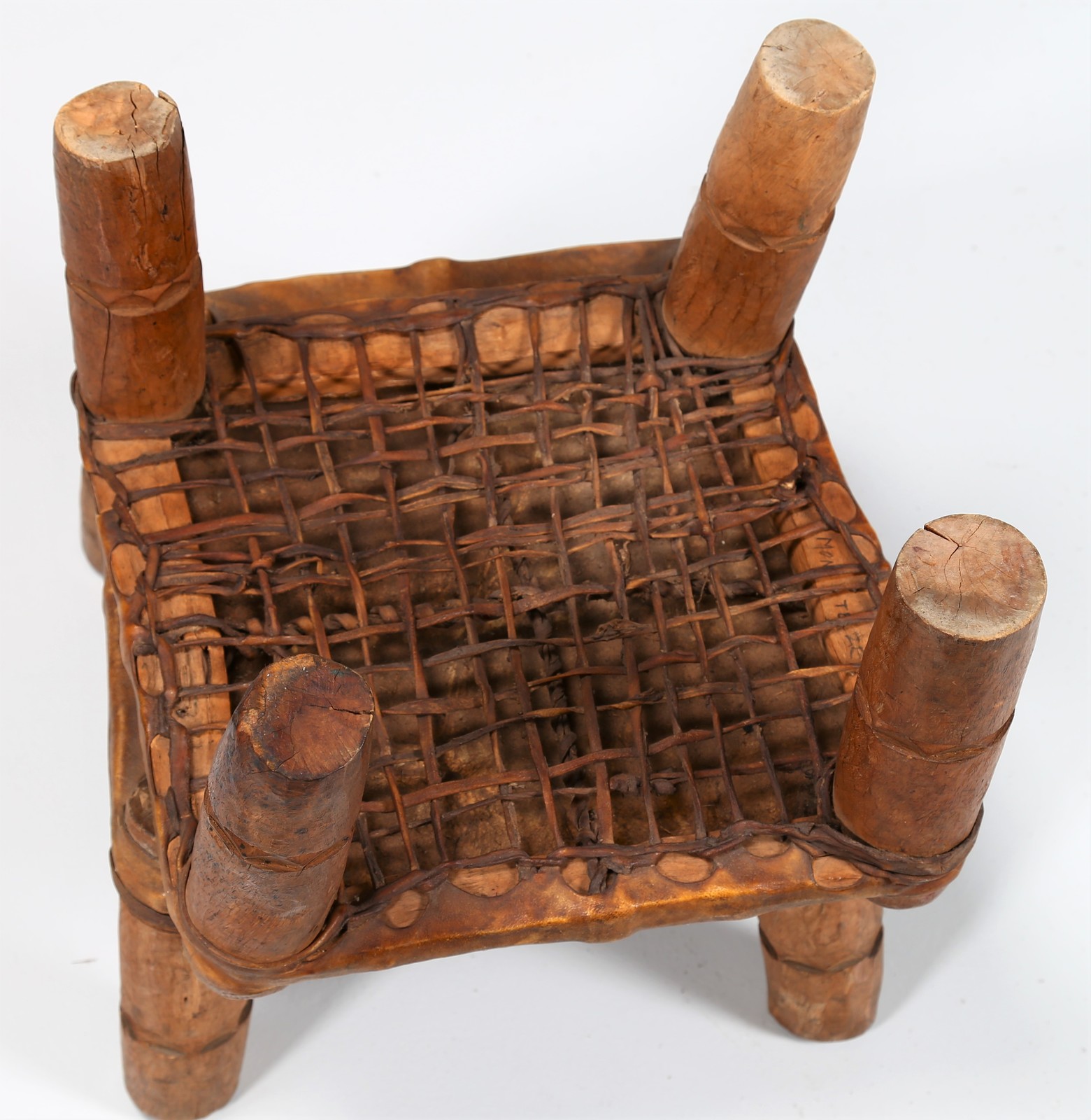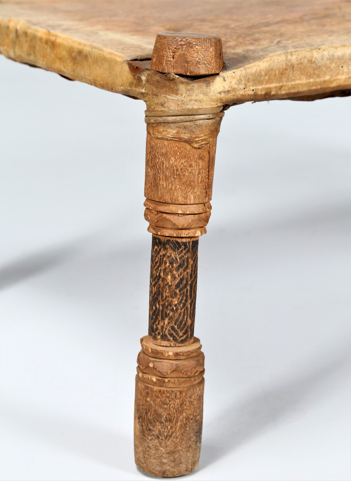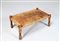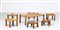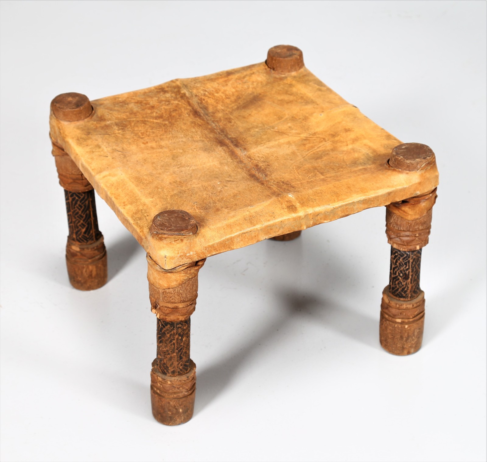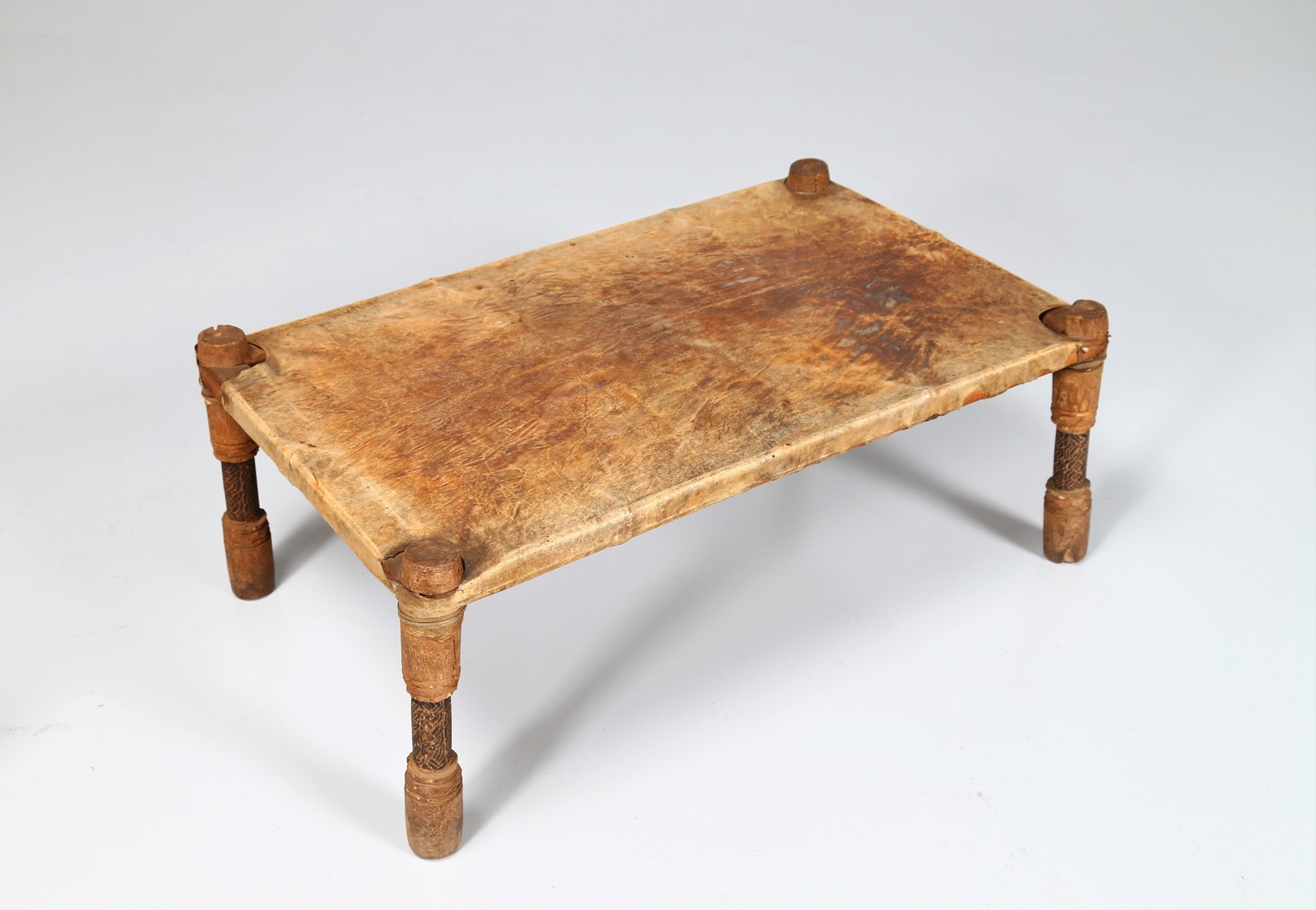 - Six stools and a wood and leather table, 1960s. . Cm 102,00 x 40,00 x 58,00. 4 stools h30, l37, d37,