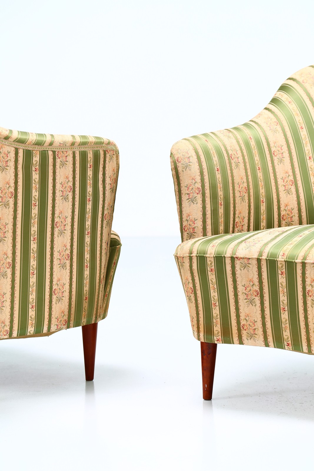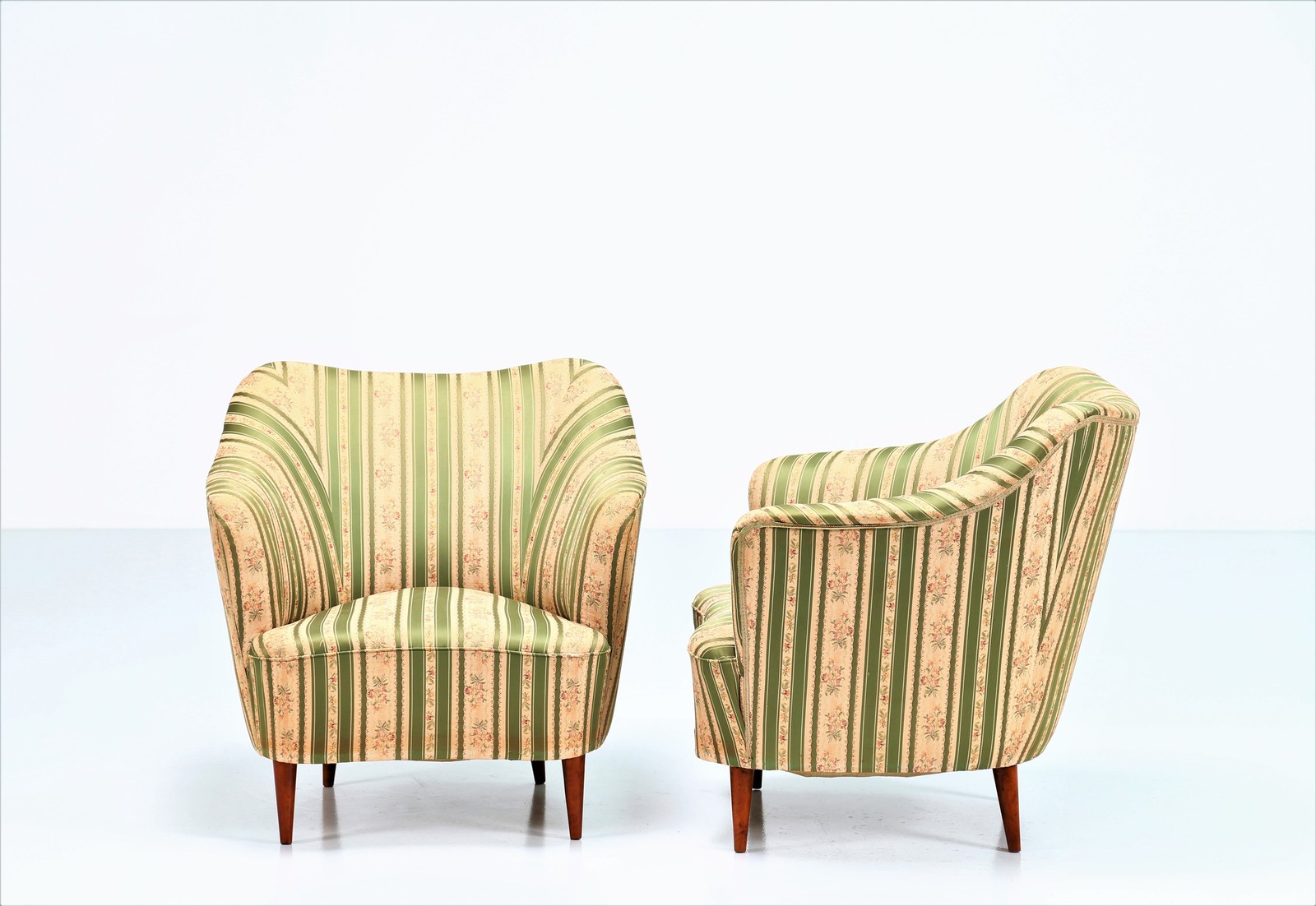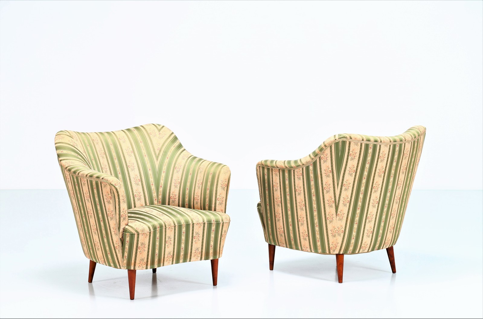 PONTI GIO' (1891 - 1979) Coppia di poltrone in legno e tessuto, per casa e...