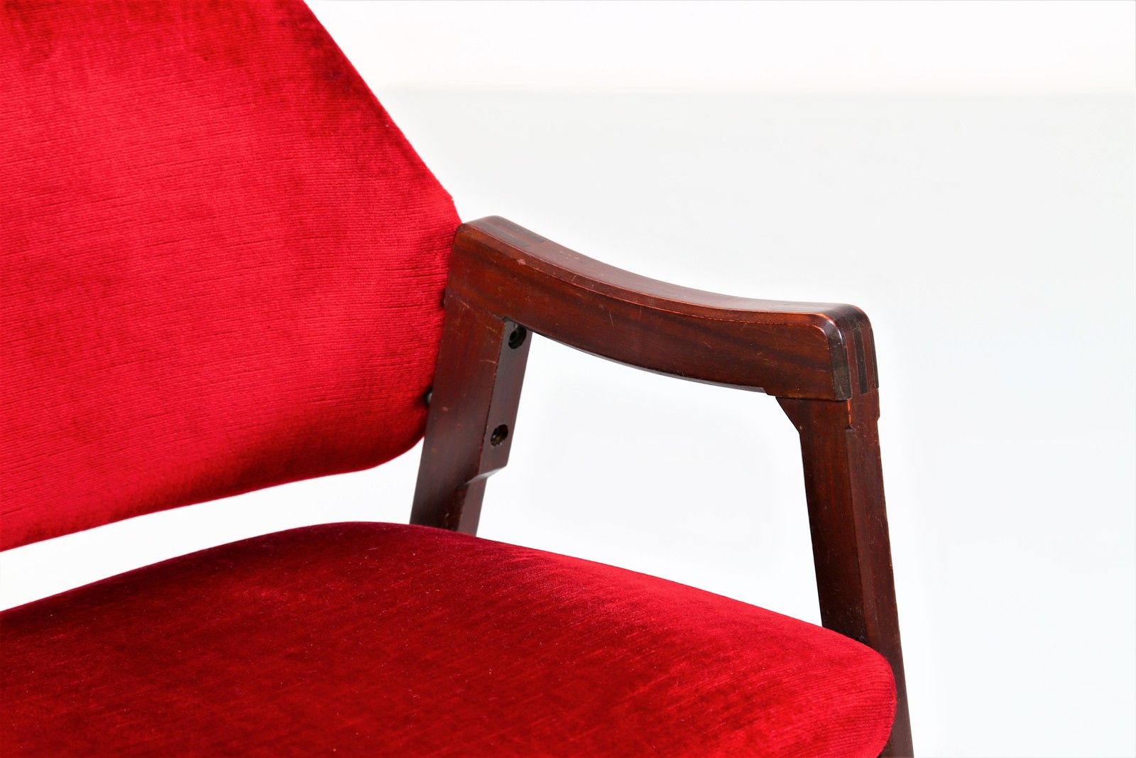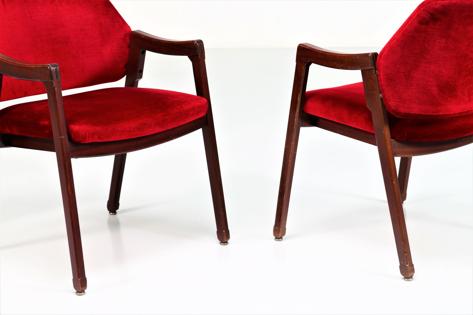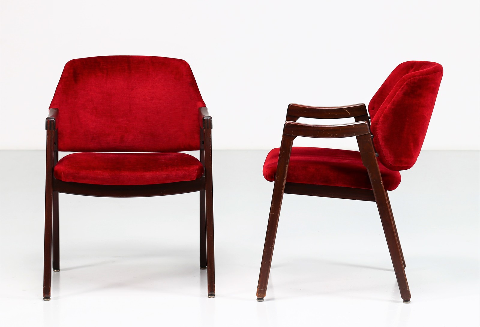 PARISI ICO (1916 - 1996) Pair of wood and fabric easy seats, mod. 814, for Cassina, 1960s. Original label present. . Cm 56,00 x 77,00 x 60,00.