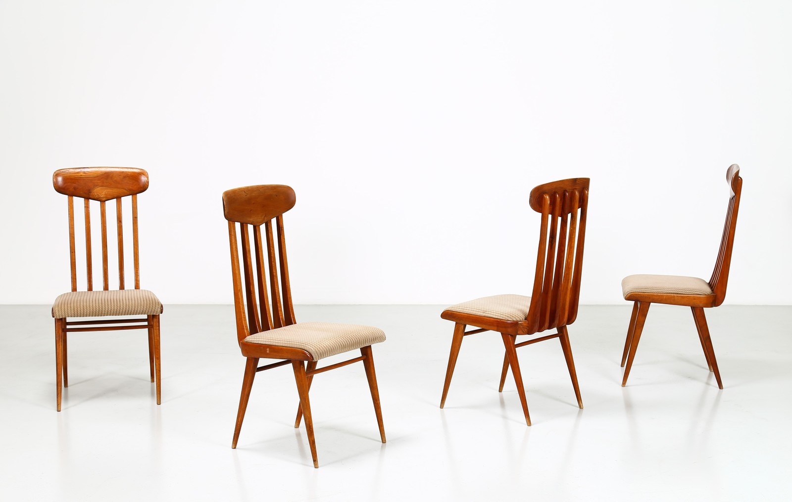 Lot 291 | ANONIMO Quattro sedie in noce e tessuto, anni 40, Pubblicazioni; Il mobile...