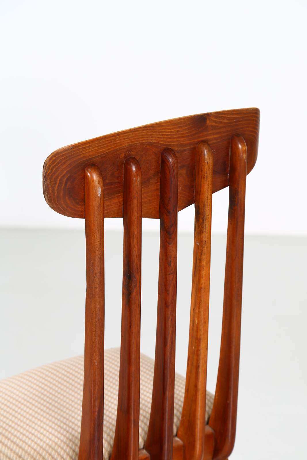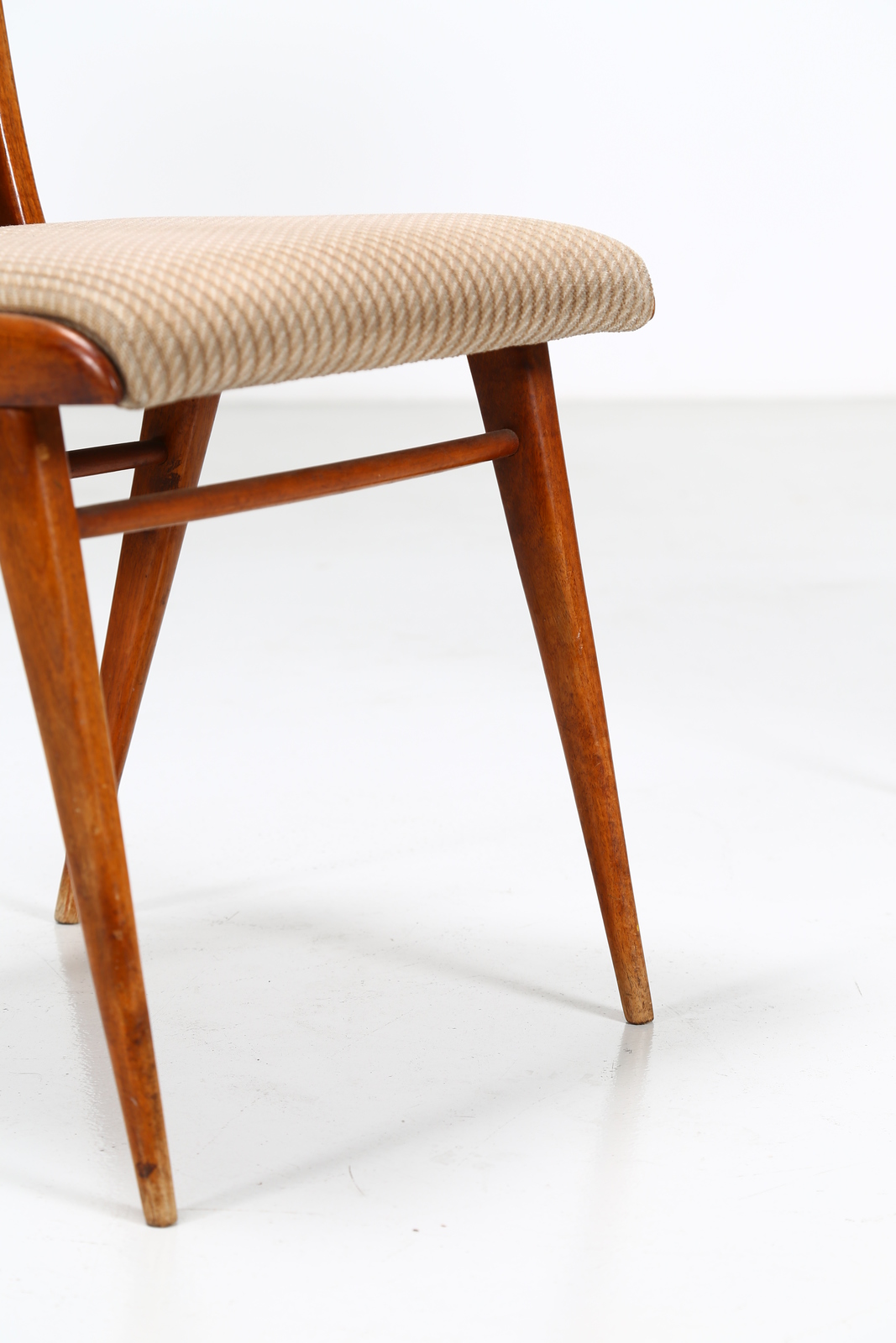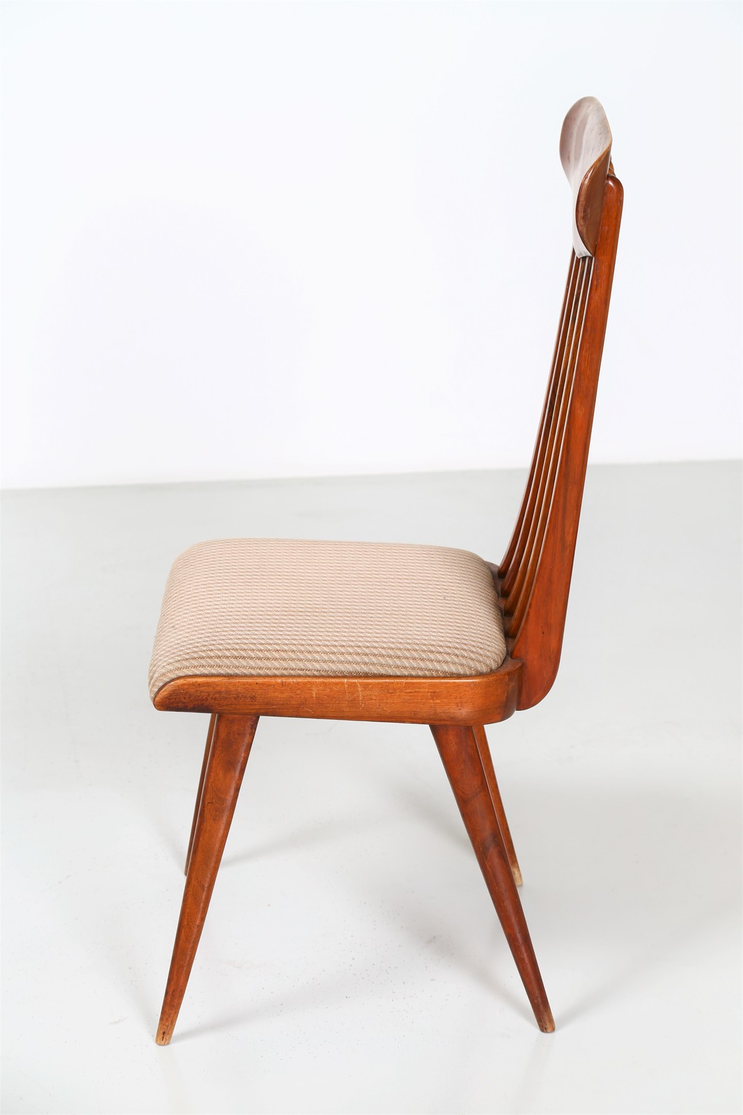 ANONIMO Four walnut and fabric chairs, 1940s, Publication: Il mobile italiano degli anni '40 e '50 by Irene De Guttry, Maria Paola Maino, page 25, fig. 20. . Cm 45,00 x 99,00 x 50,00.