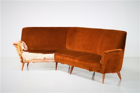 PARISI ICO (1916 - 1996) Attrib. Divano ad angolo in legno e tessuto, anni...
