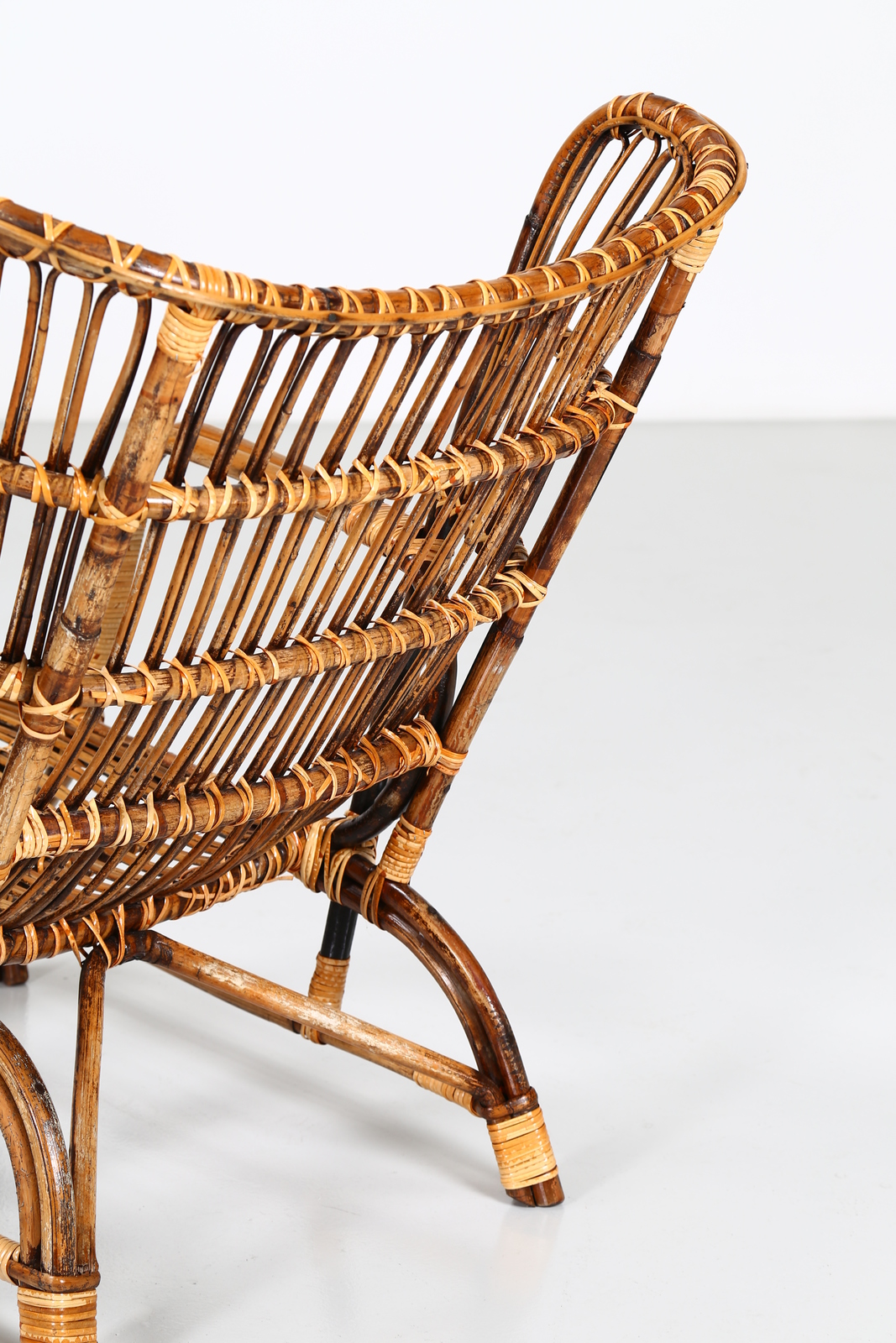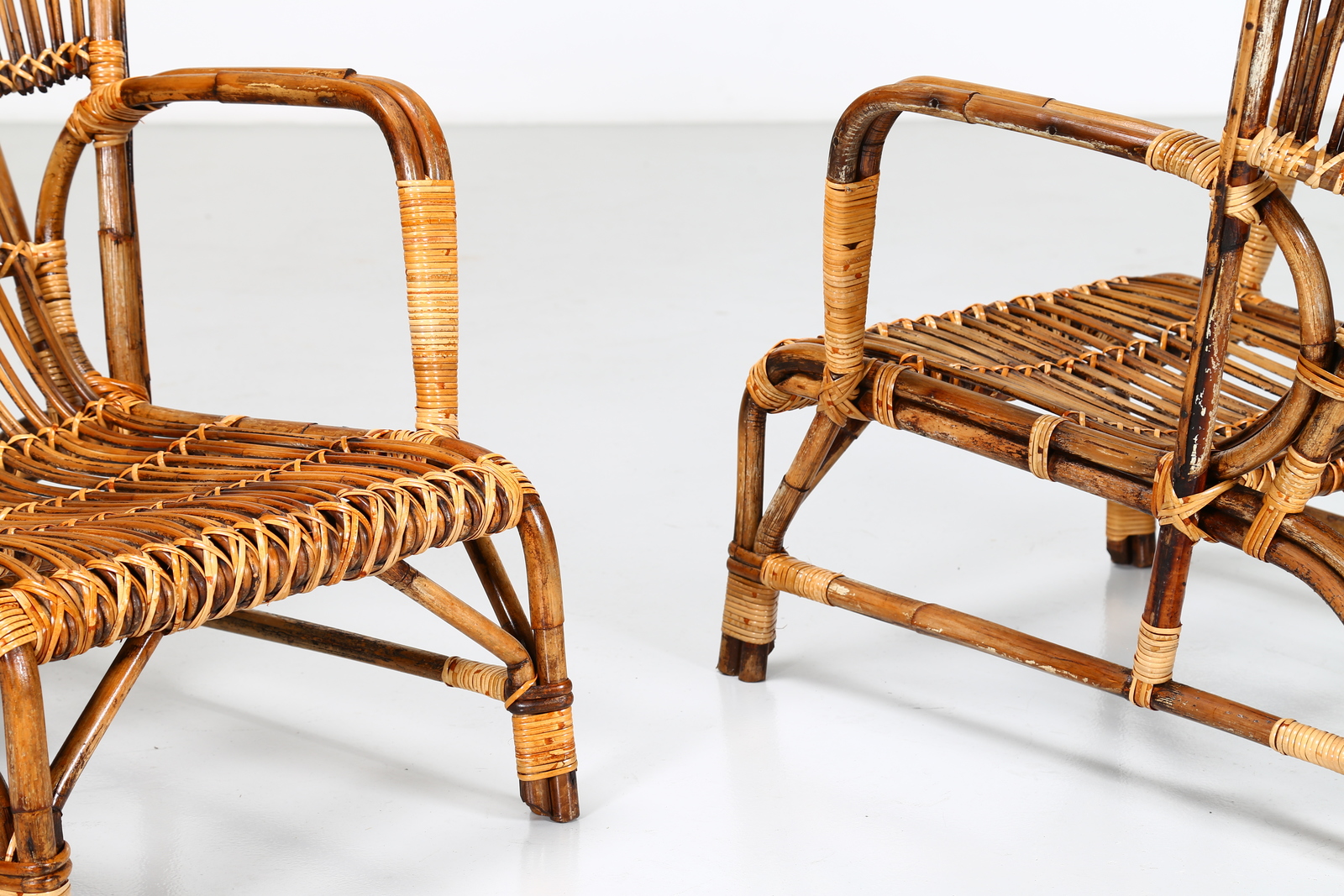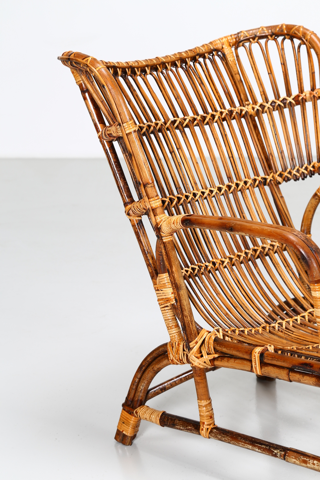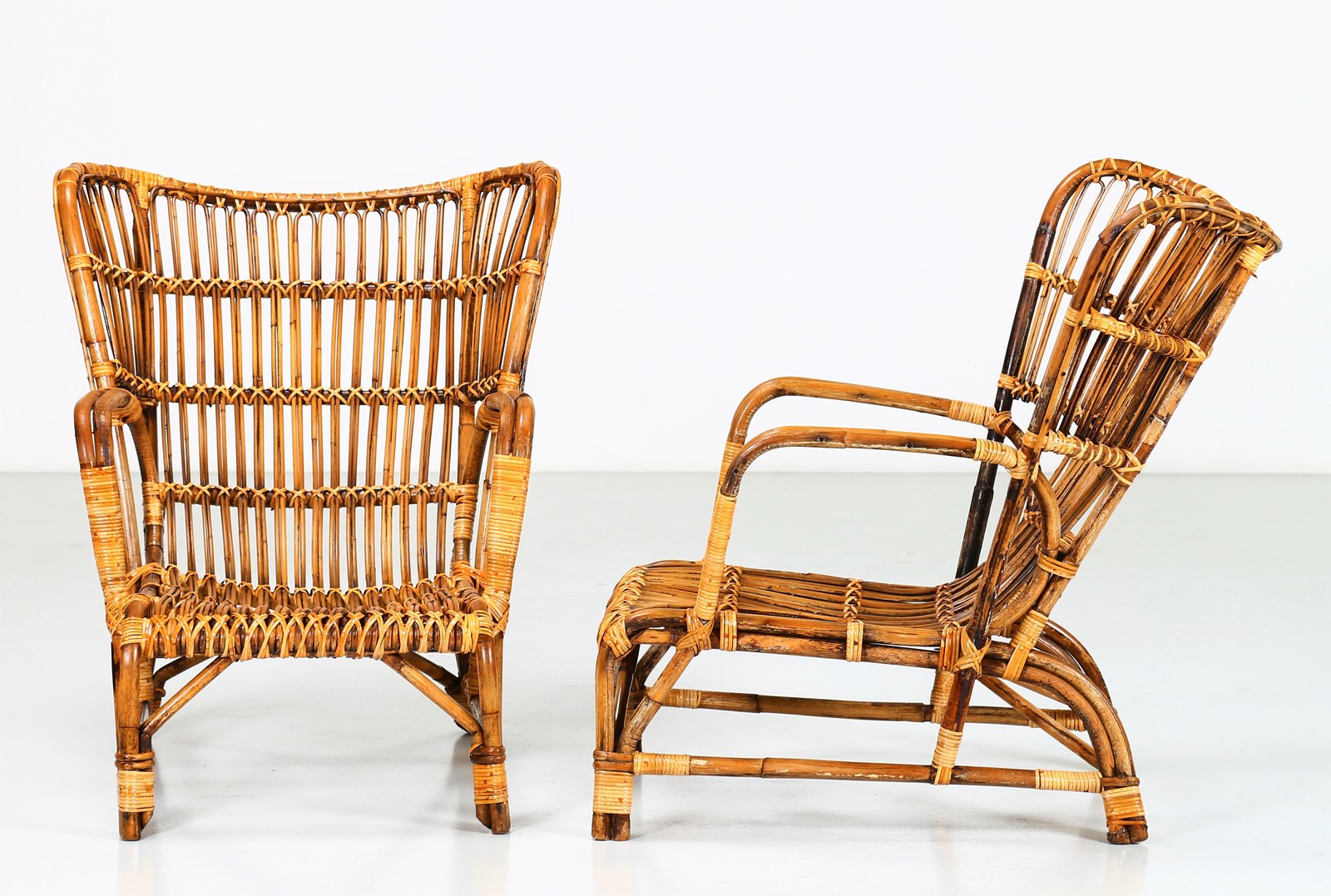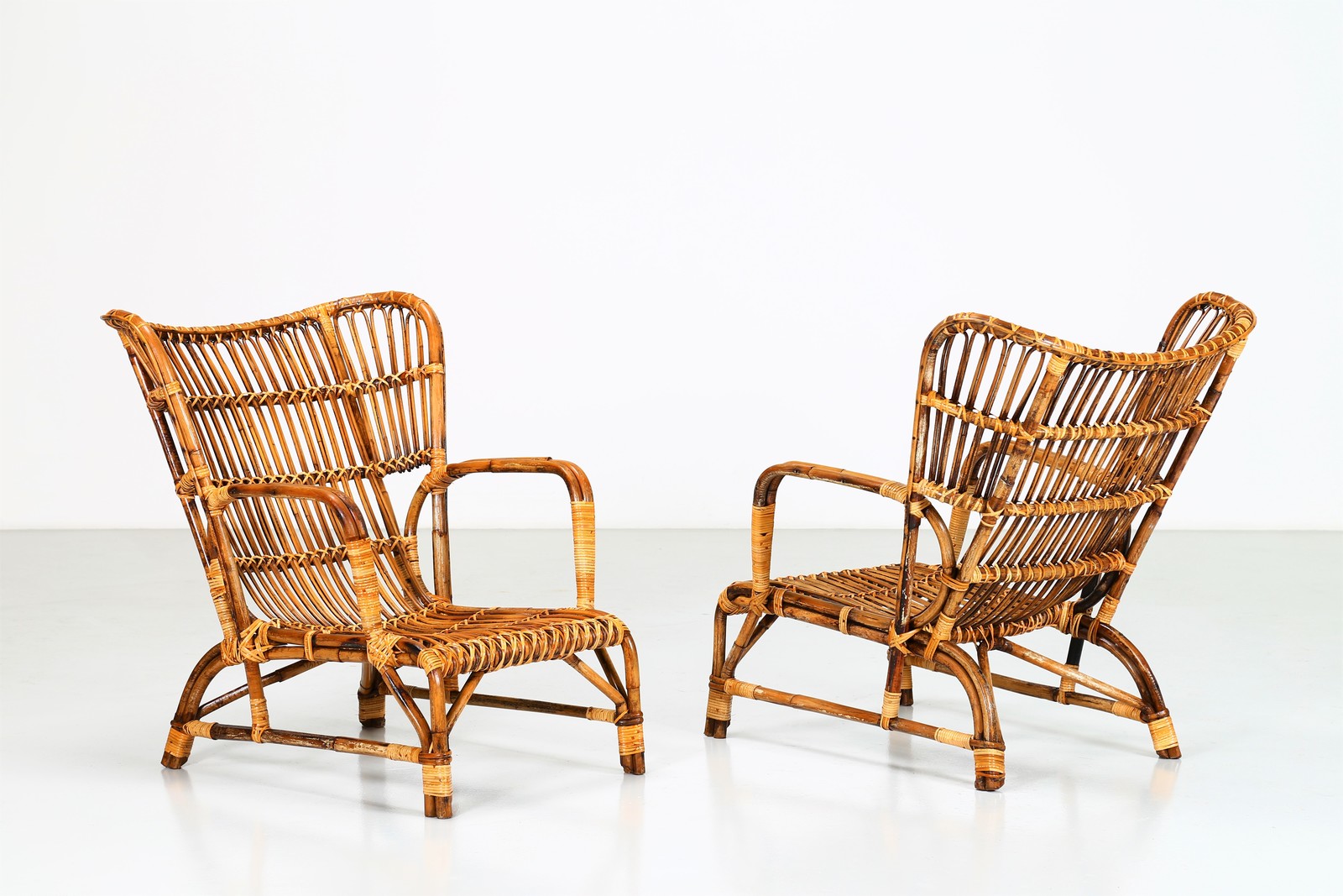 BONACINA VITTORIO Pair of cane armchairs, 1950s. . Cm 77,00 x 90,00 x 94,00.
