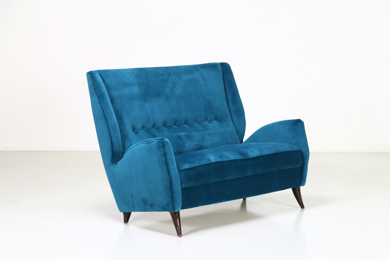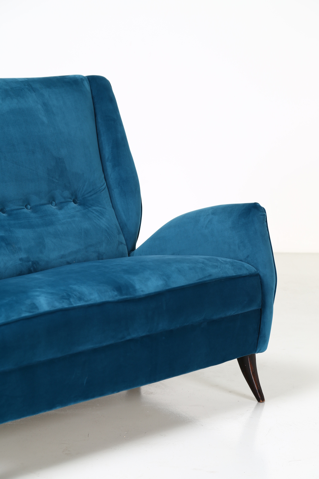 ISA BERGAMO Wood and fabric sofa, 1950s