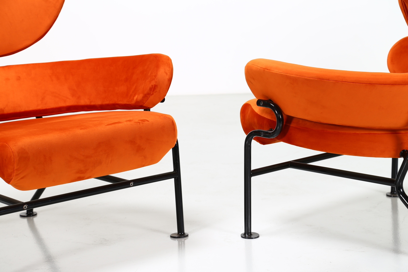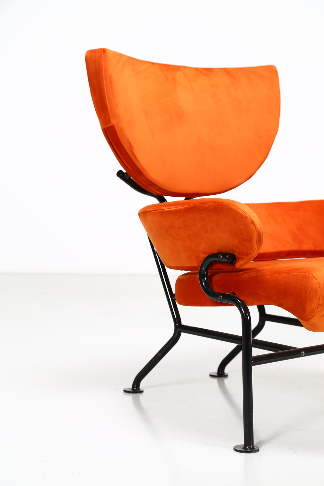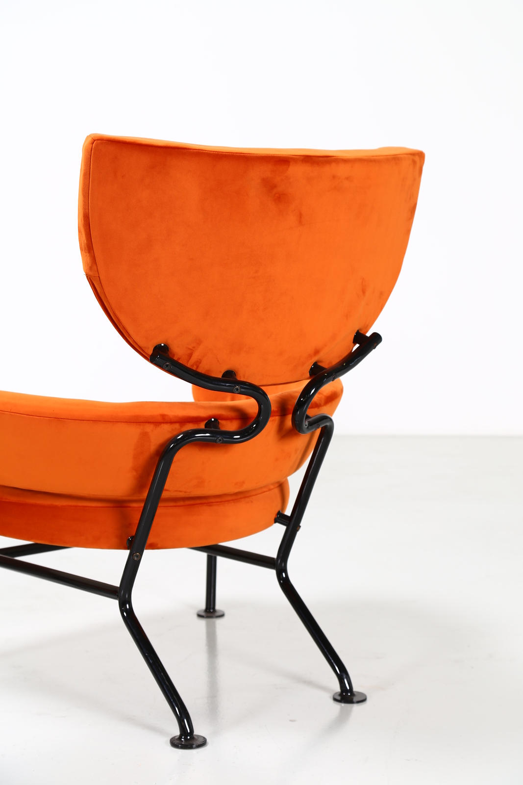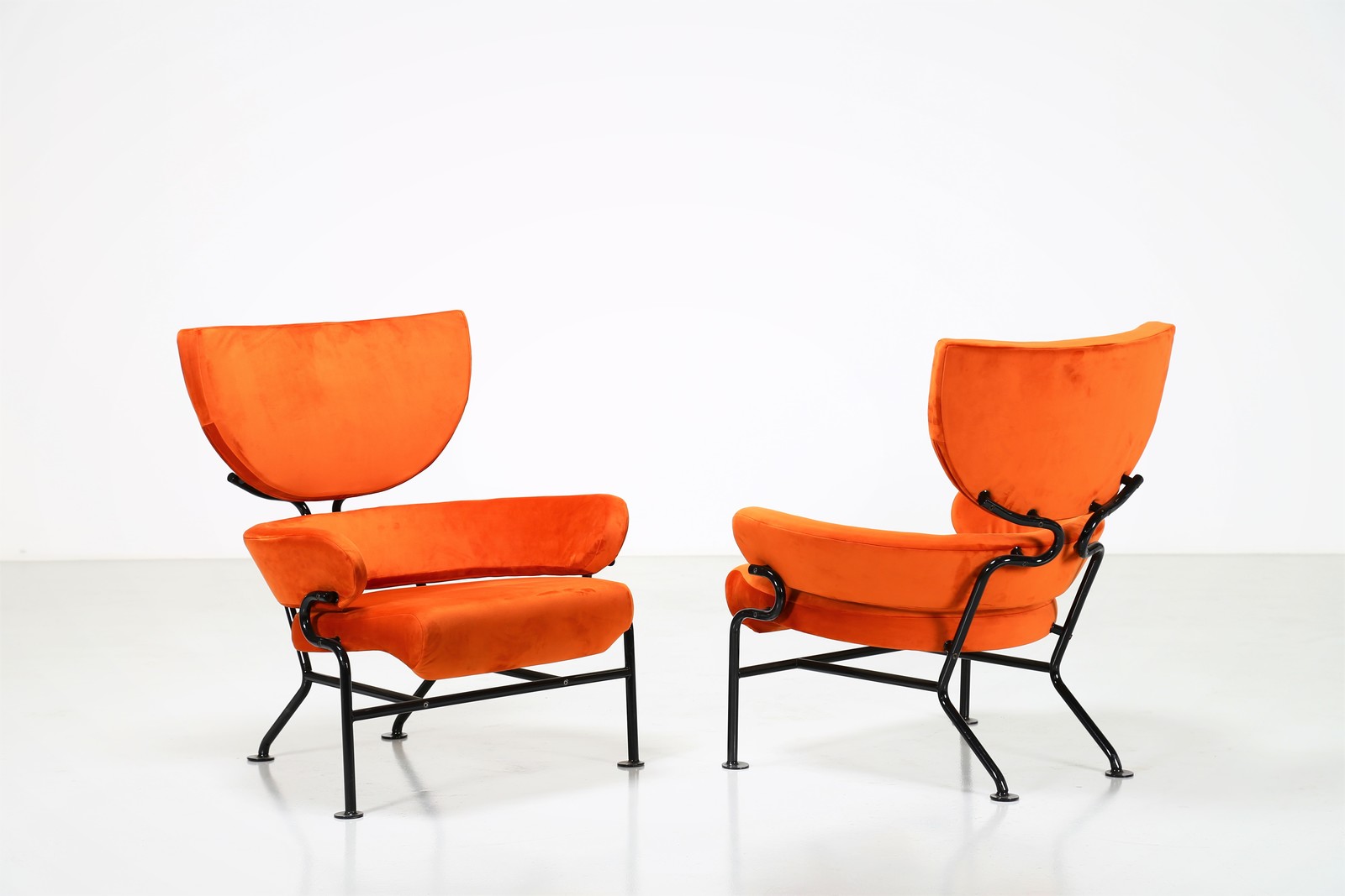 ALBINI FRANCO (1905 - 1977) Pair of lacquered metal and fabric armchairs, mod. PL19, Three pieces, for Poggi Pavia. . Cm 82,00 x 93,00 x 82,00.