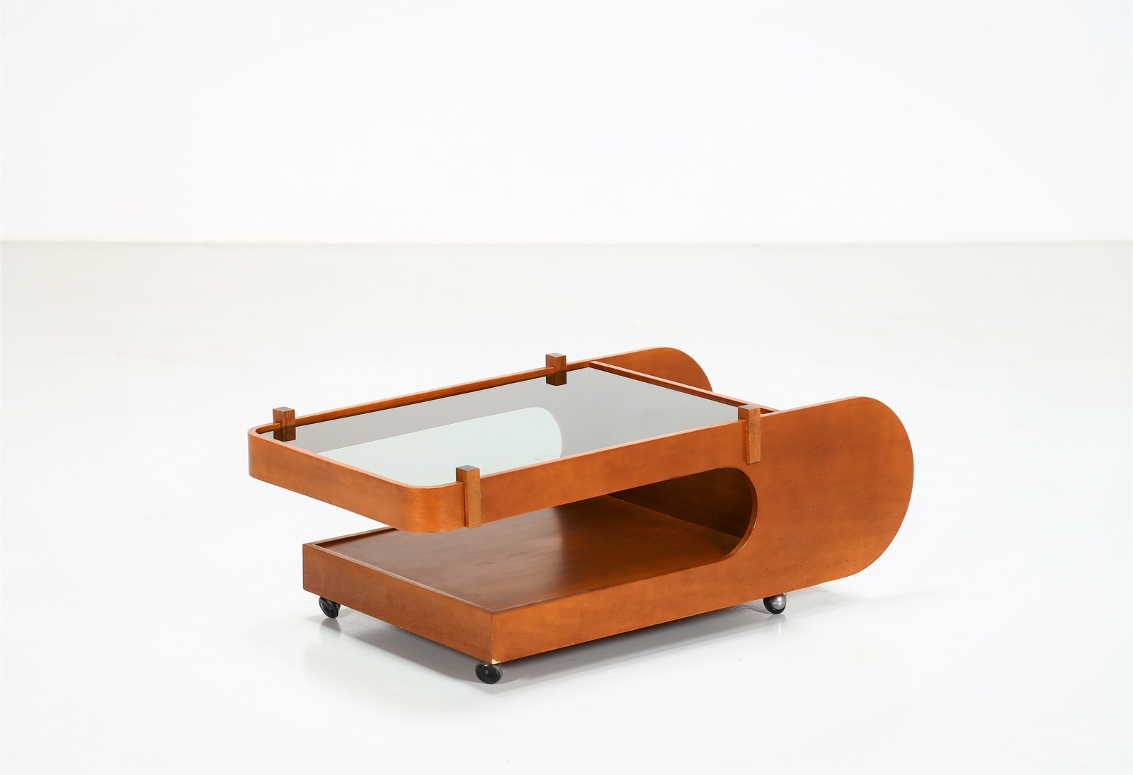 Lot 332 | MANIFATTURA ITALIANA Tavolino da caffè e bar, in legno alluminio e vetro,...