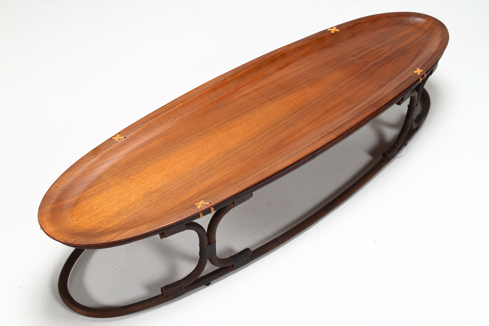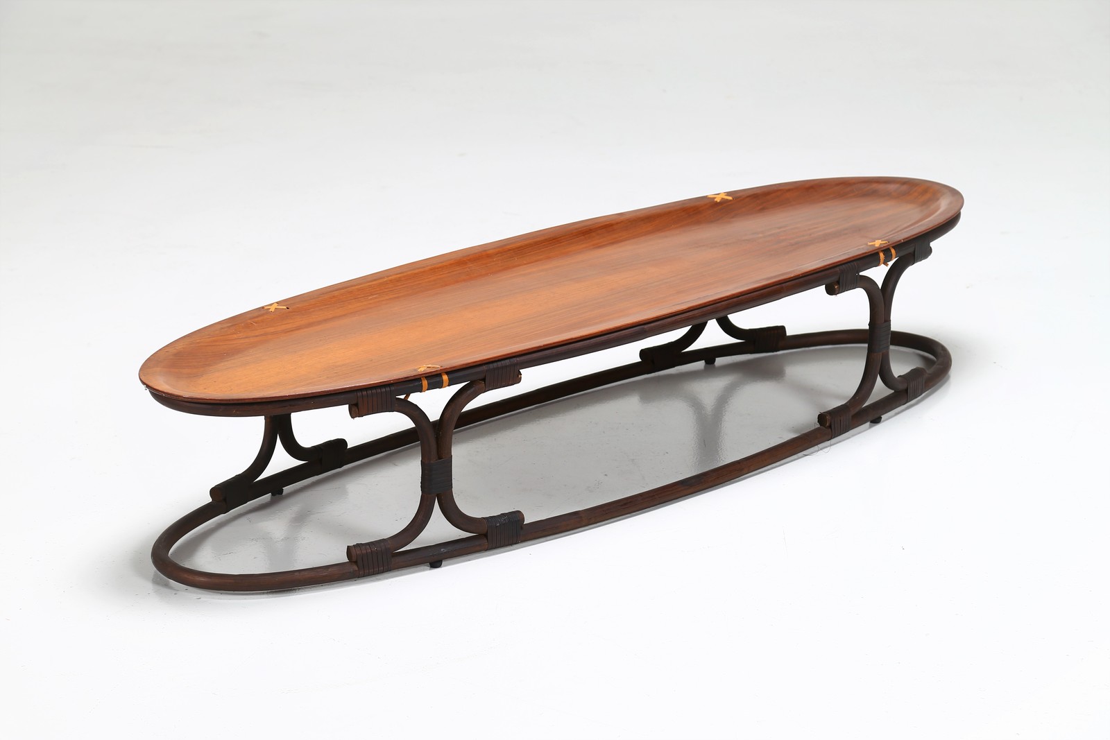 MANIFATTURA ITALIANA Tavolino in legno e bamboo, anni 60. -. Cm 141,00 x...