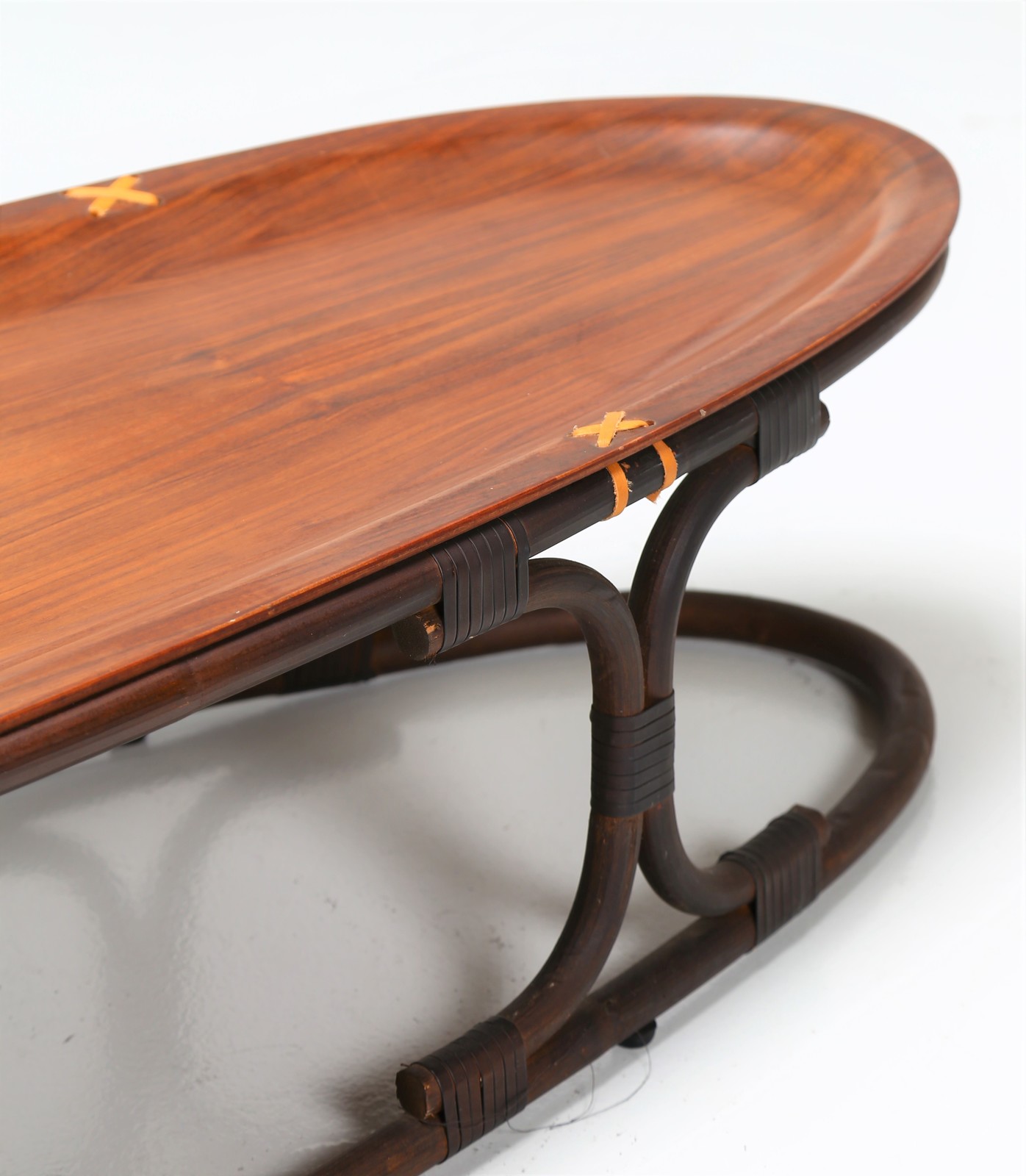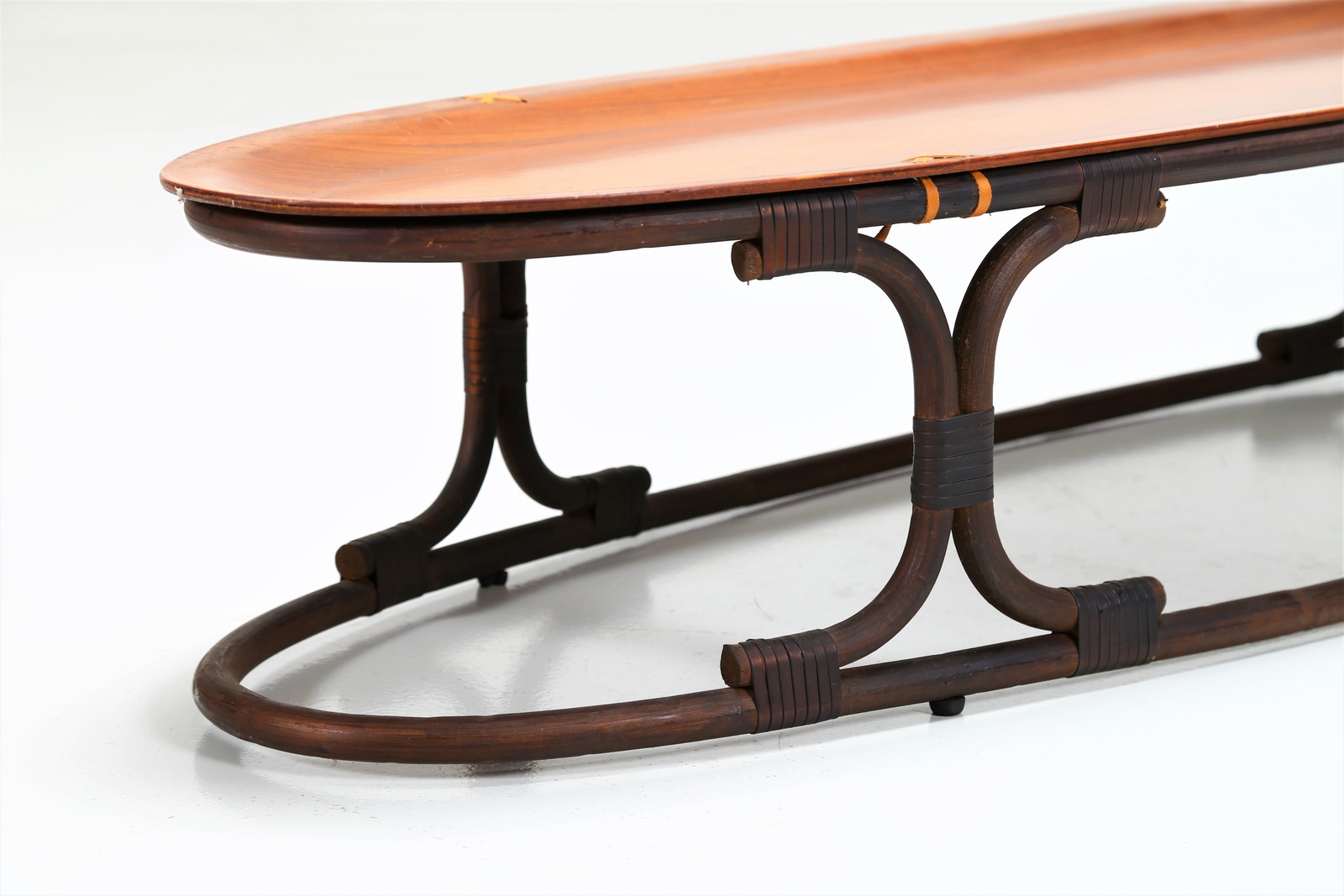 MANIFATTURA ITALIANA Tavolino in legno e bamboo, anni 60. -. Cm 141,00 x 26,00 x 42,00.