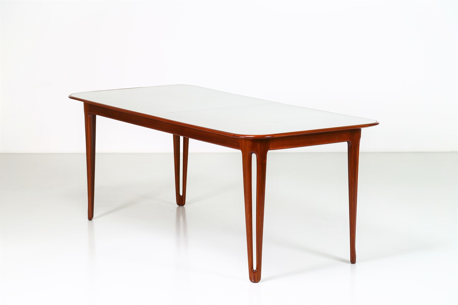 Lot 347 | MANIFATTURA ITALIANA Tavolo in mogano con piano in cristallo anni 50. . Cm...