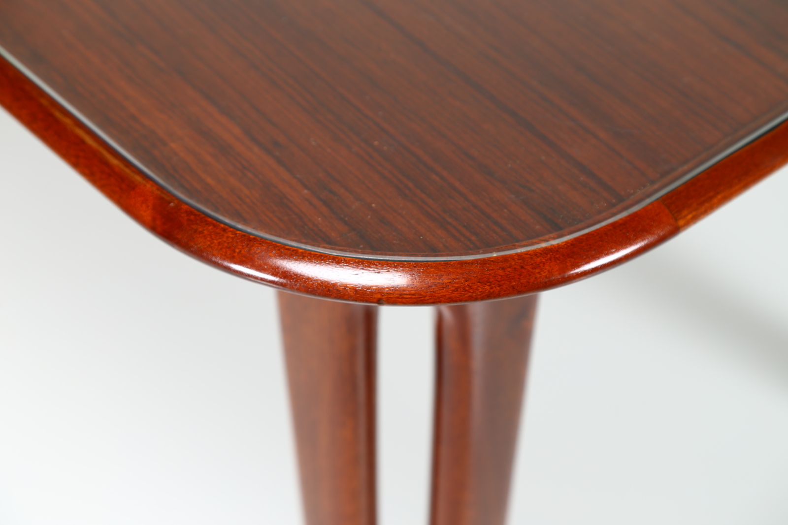 MANIFATTURA ITALIANA Tavolo in mogano con piano in cristallo anni 50. . Cm...