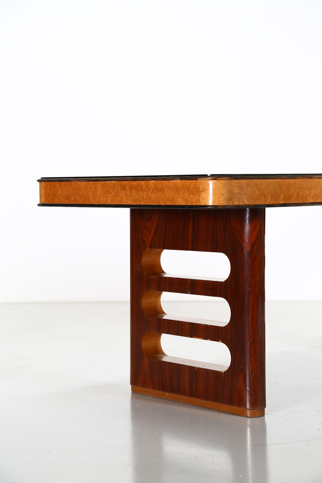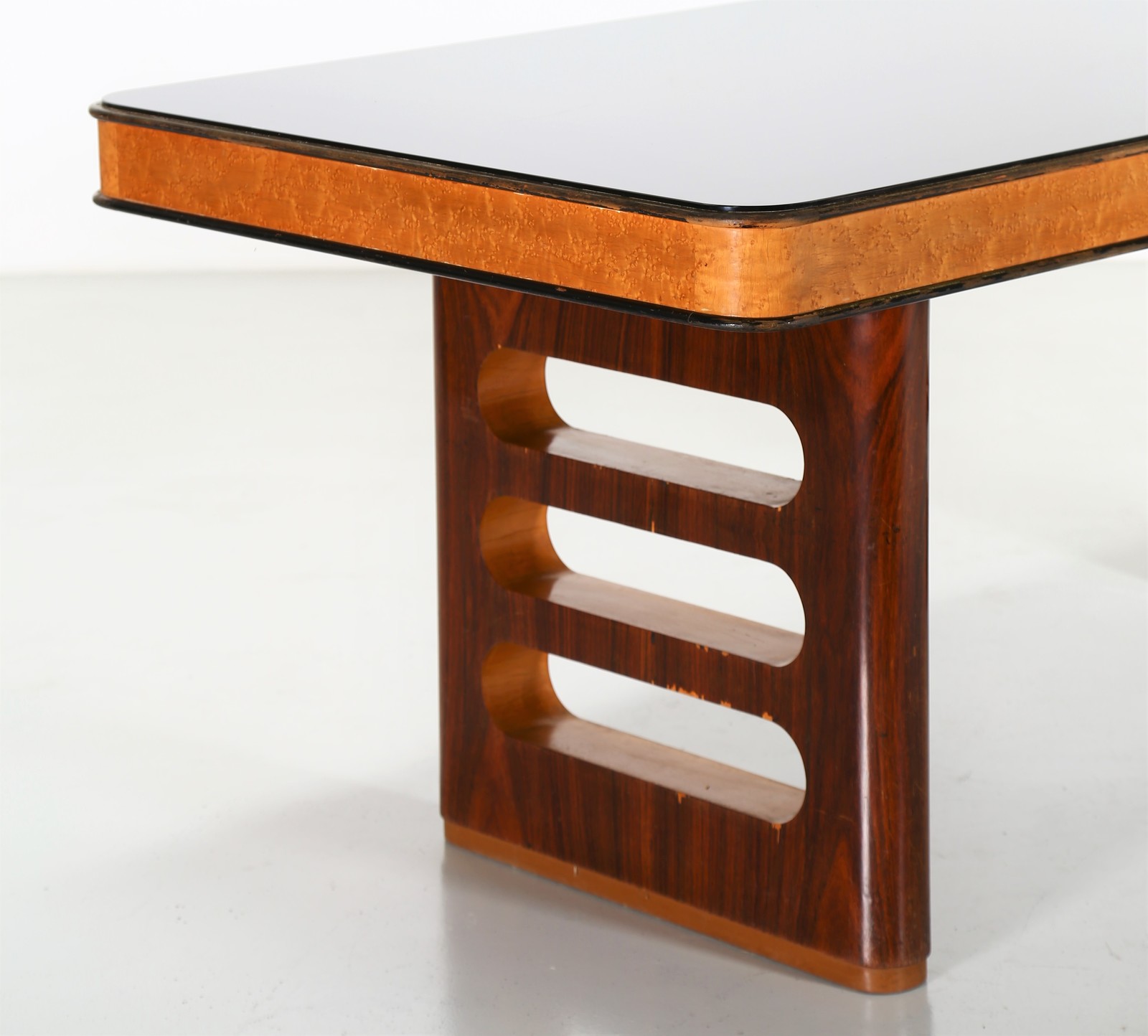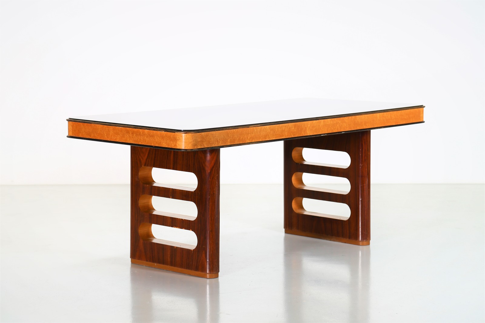 BORSANI OSVALDO (1911 - 1985) Mahogany table with glass top, 1940s. . Cm 201,00 x 82,00 x 96,00.