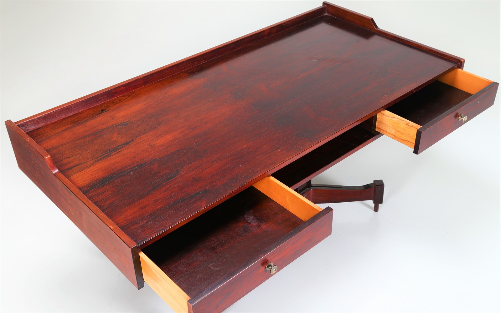 SALOCCHI CLAUDIO (1934 - 2009) Scrivania in legno di palissandro e ottone, per Sormani 1970. -. Cm 161,00 x 80,00 x 78,00.