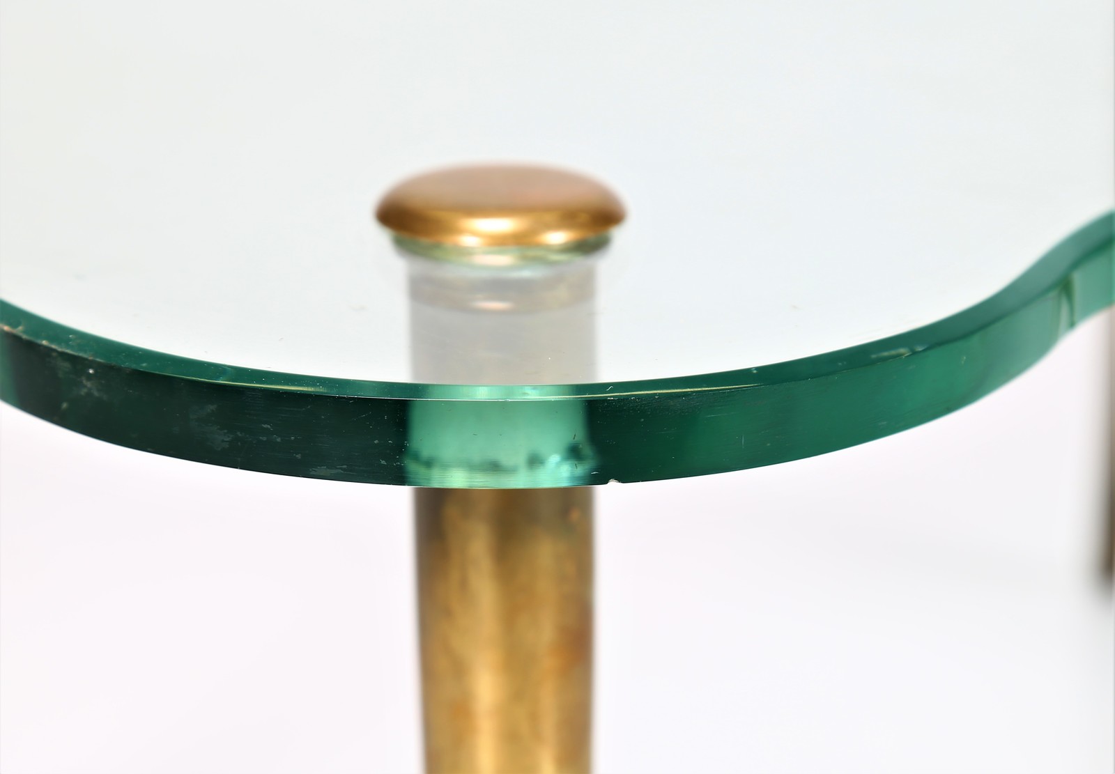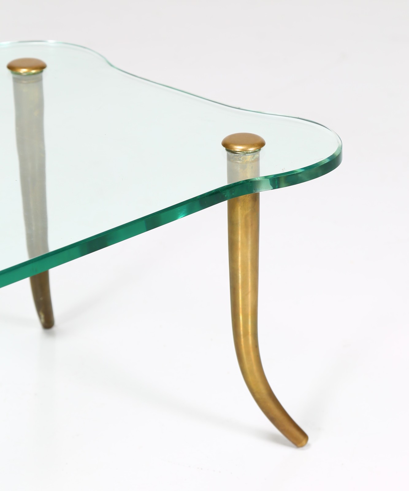 BUFFA PAOLO (1903 - 1970) Small brass table with crystal glass top, 1950s. . Cm 85,00 x 36,00 x 53,00. Small chipping on glass