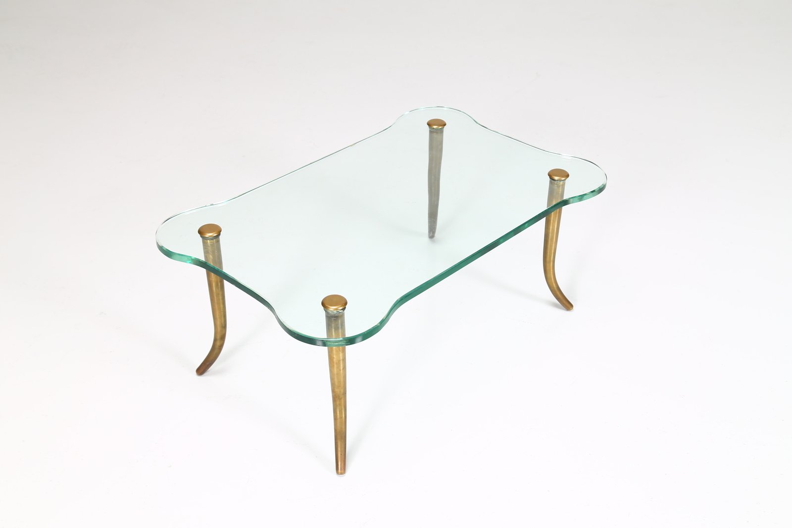 BUFFA PAOLO (1903 - 1970) Tavolino in ottone con piano in cristallo, anni 50....