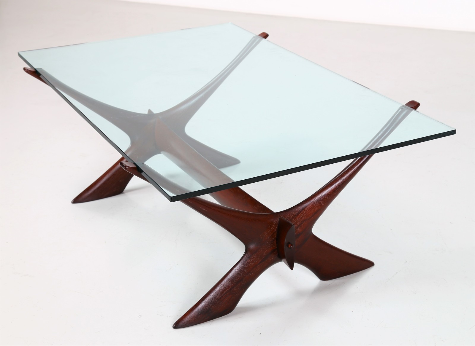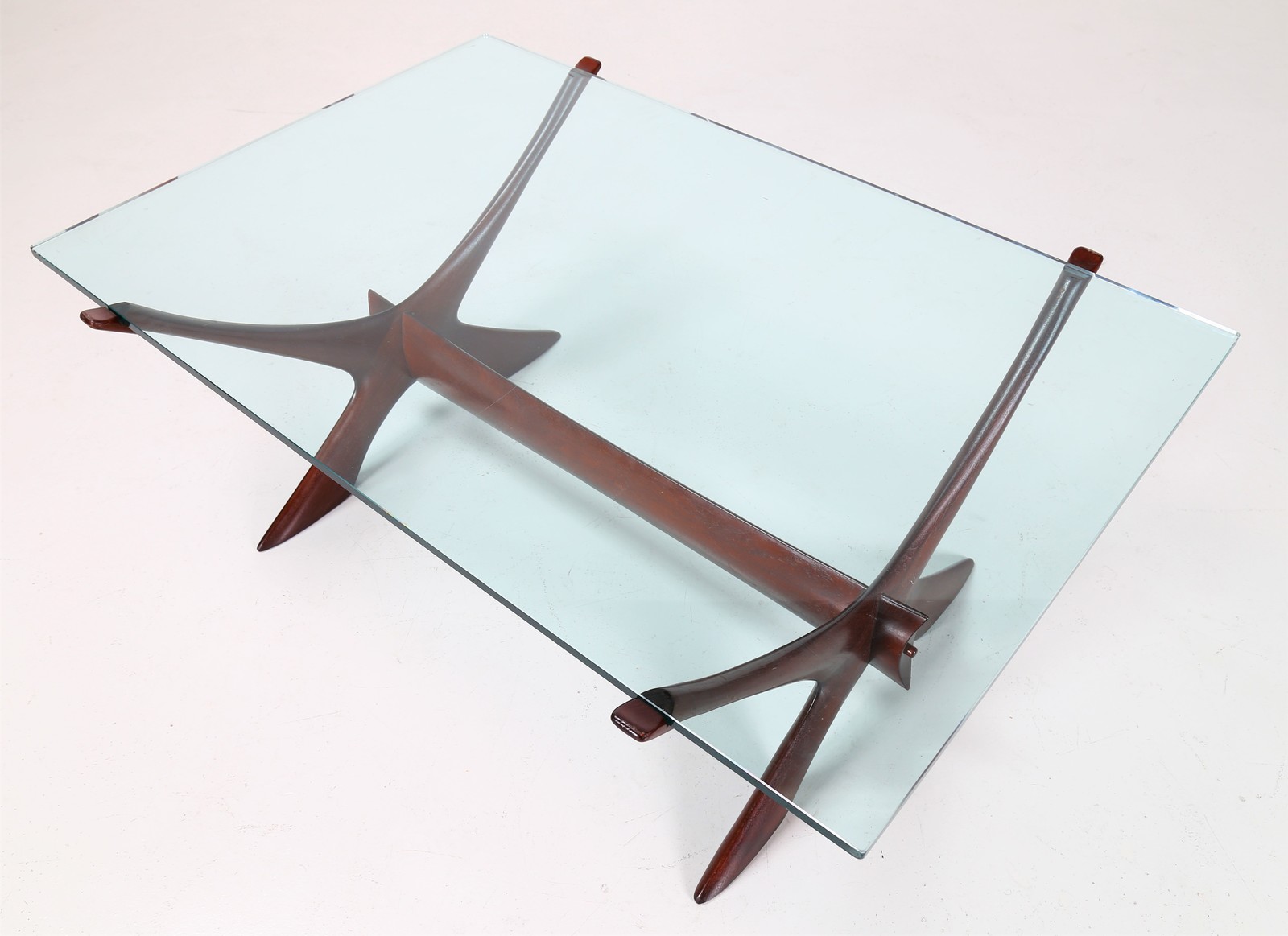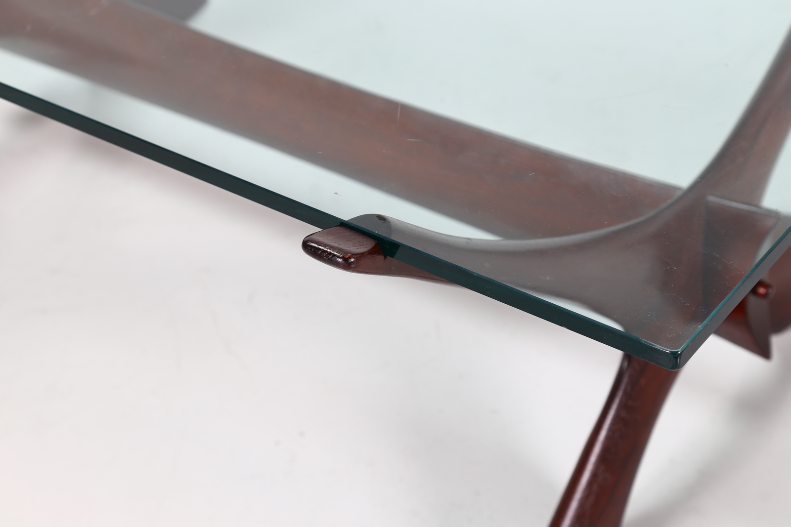 SCHRIEVER-ABELN FREDRIK Low wood table and glass top, for Örebro Glas, 1960. . Cm 132,50 x 54,00 x 94,50.