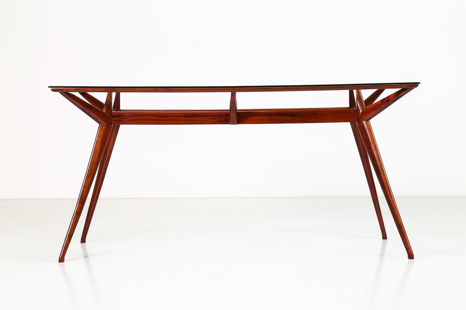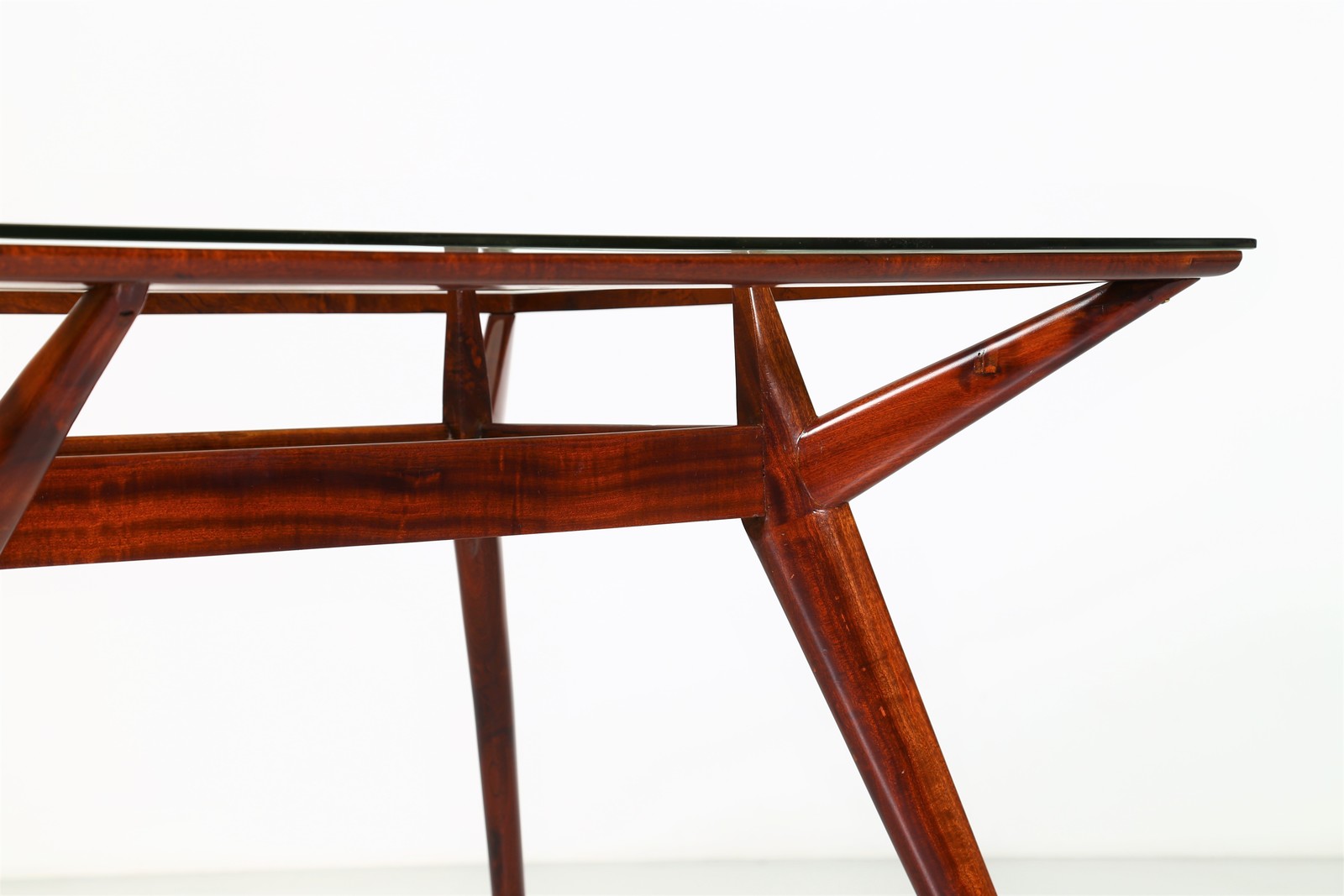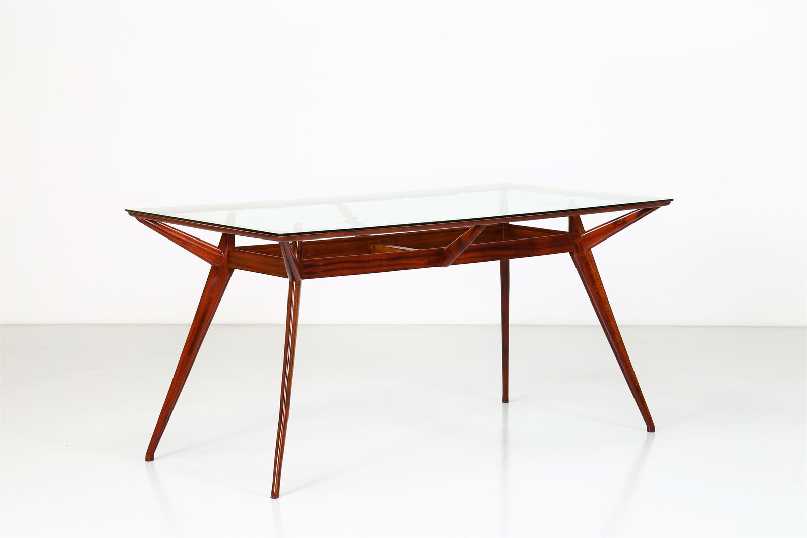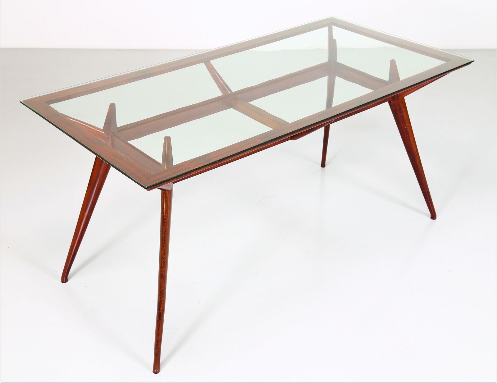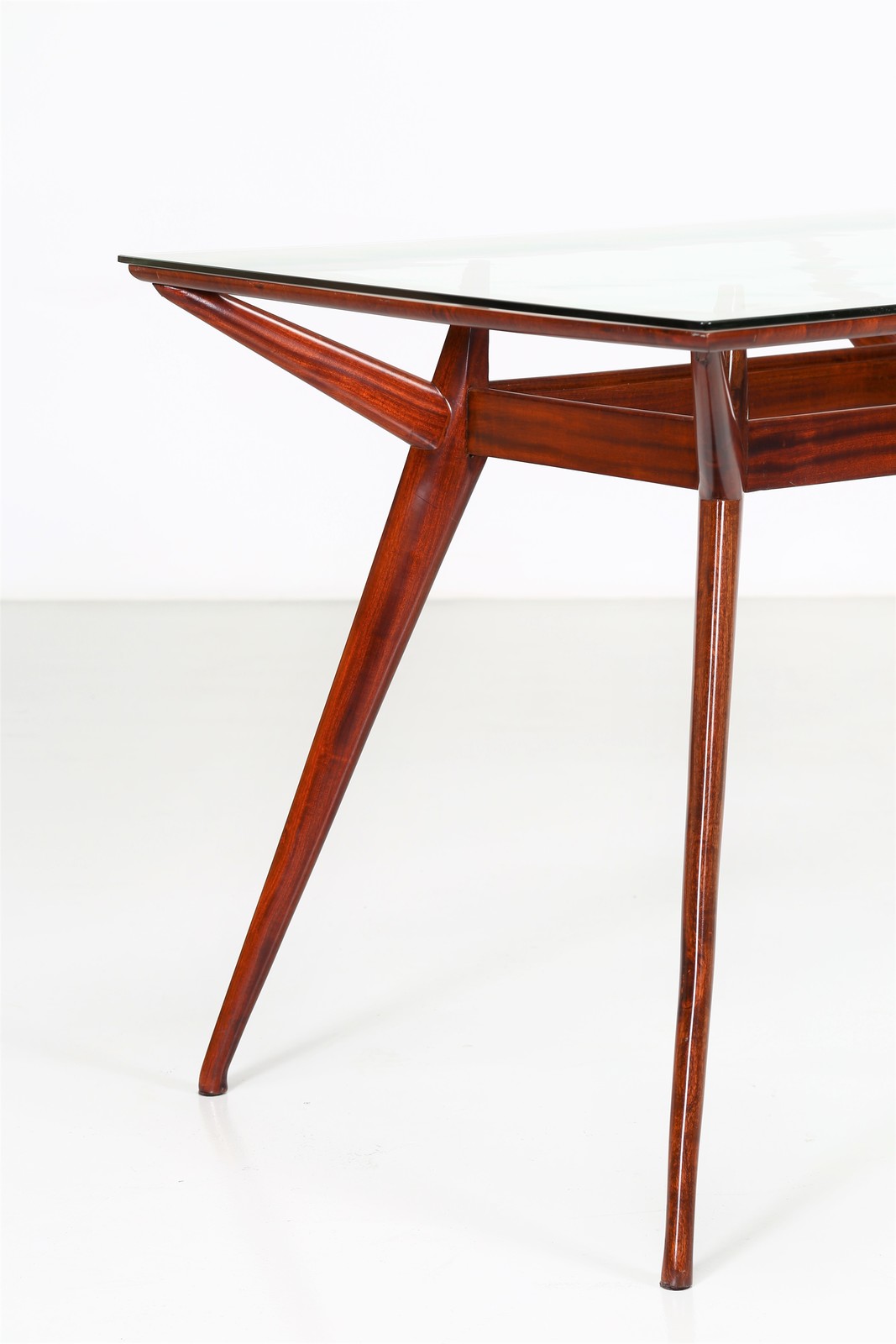 CAVATORTA SILVIO Tavolo in mogano con piano in cristallo anni 50. -. Cm 160,00 x 80,00 x 80,00.