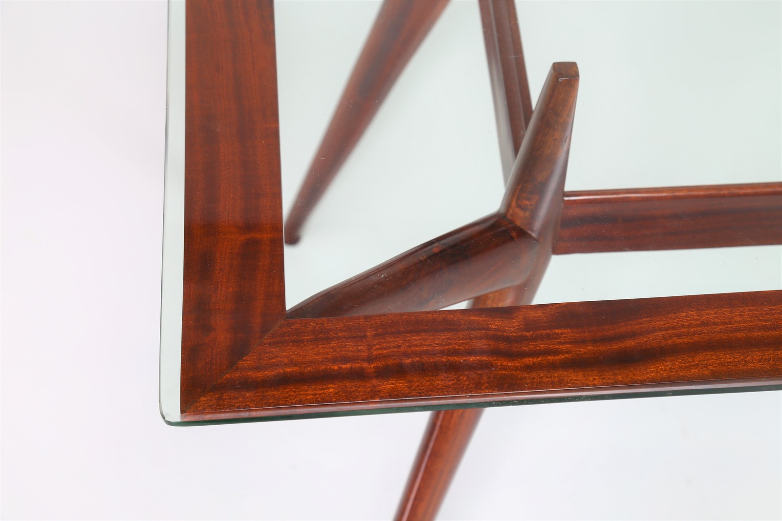 CAVATORTA SILVIO Tavolo in mogano con piano in cristallo anni 50. -. Cm...