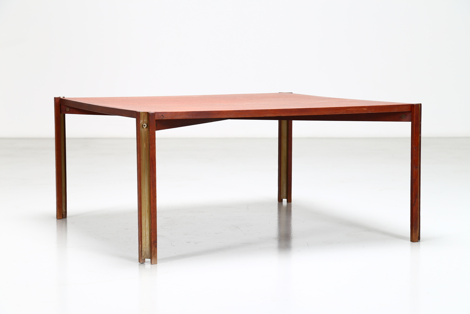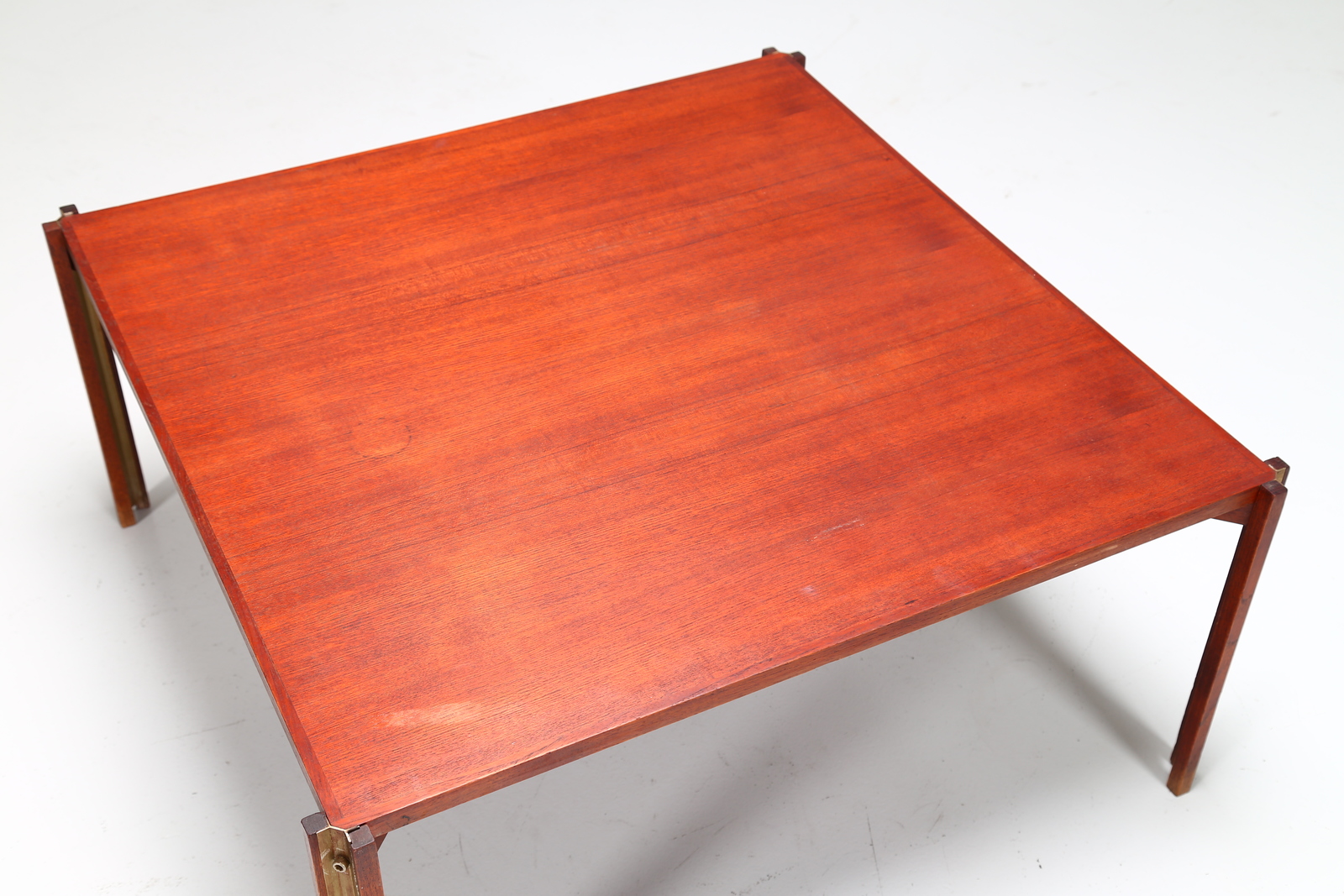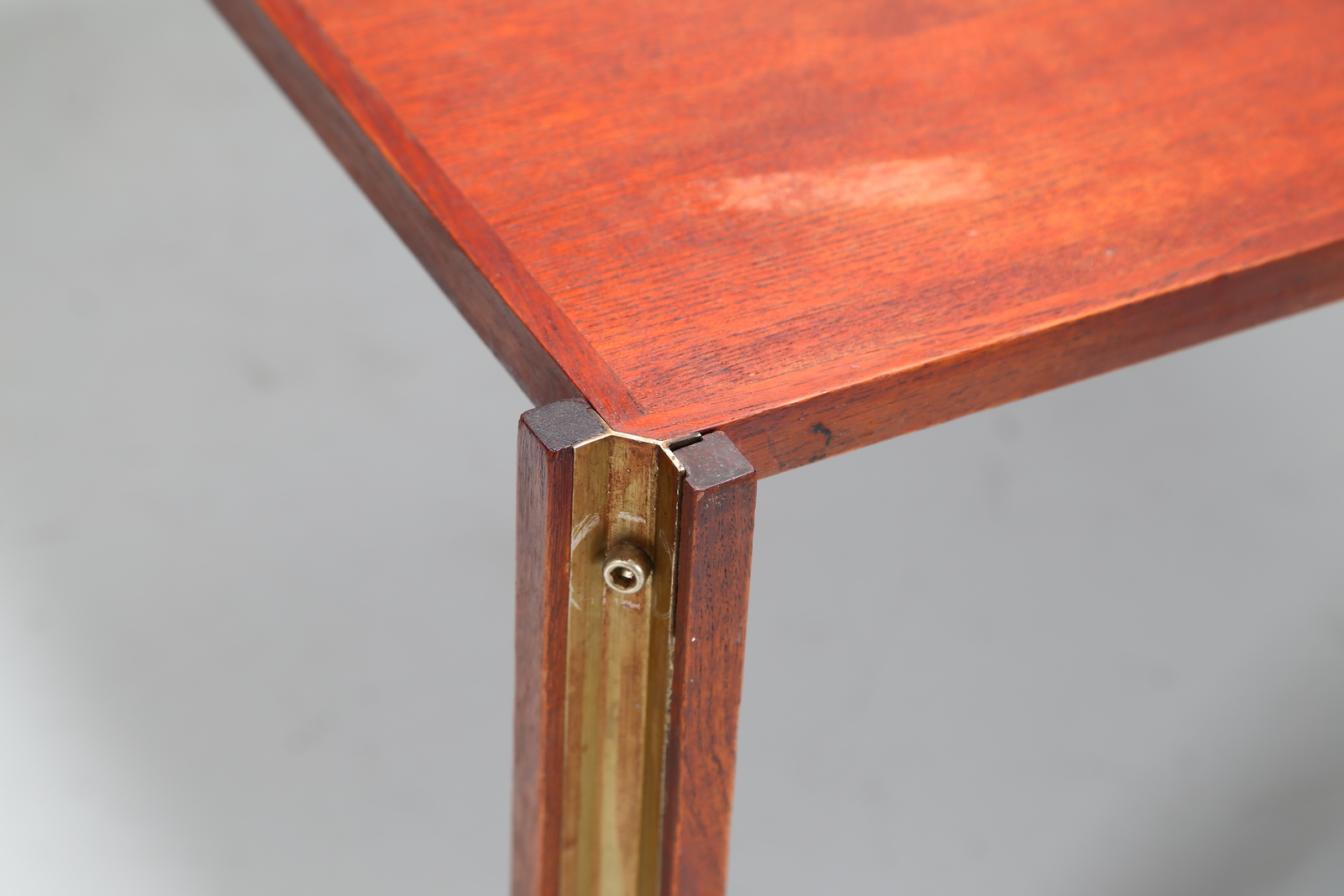 PARISI ICO (1916 - 1996) Small teak and brass table, mod. Castore 1201 for Stildomus. . Cm 83,00 x 38,50 x 83,00.