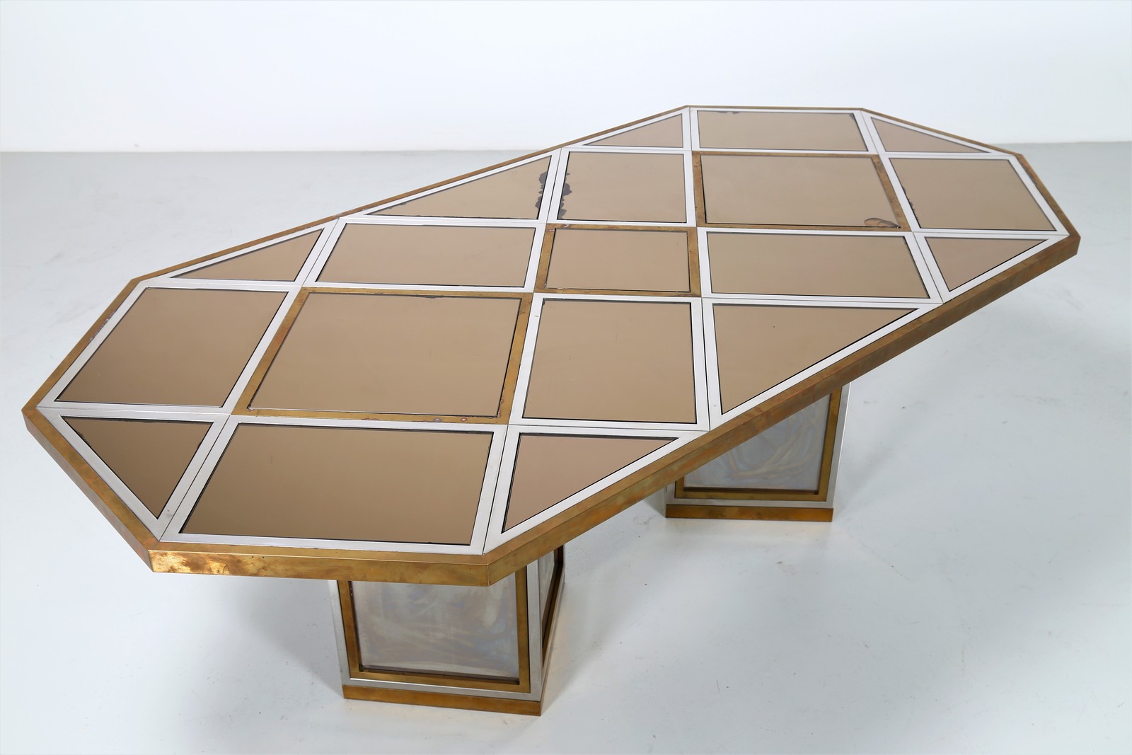REGA ROMEO Chromed metal, brass and mirrored glass table, 1960s. . Cm 222,00 x 75,00 x 114,00.
