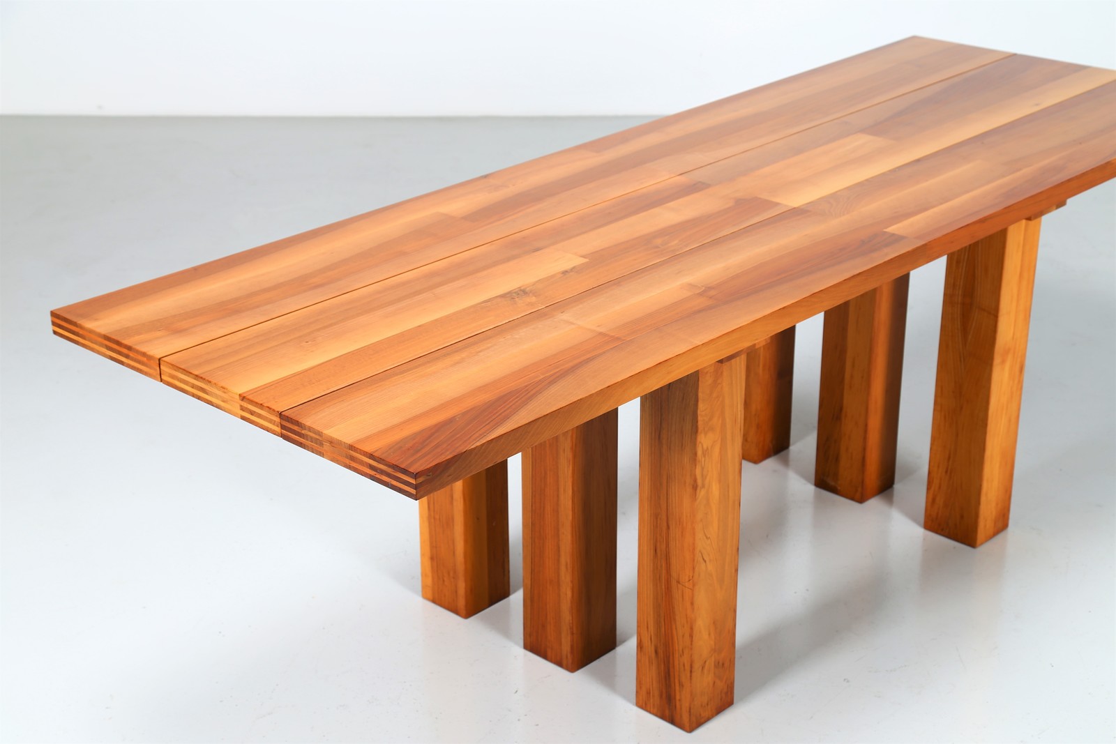 BELLINI MARIO (n. 1935) Solid walnut table, mod. 451 La Basilica, for Cassina, 1970s. . Cm 225,00 x 74,00 x 78,00.