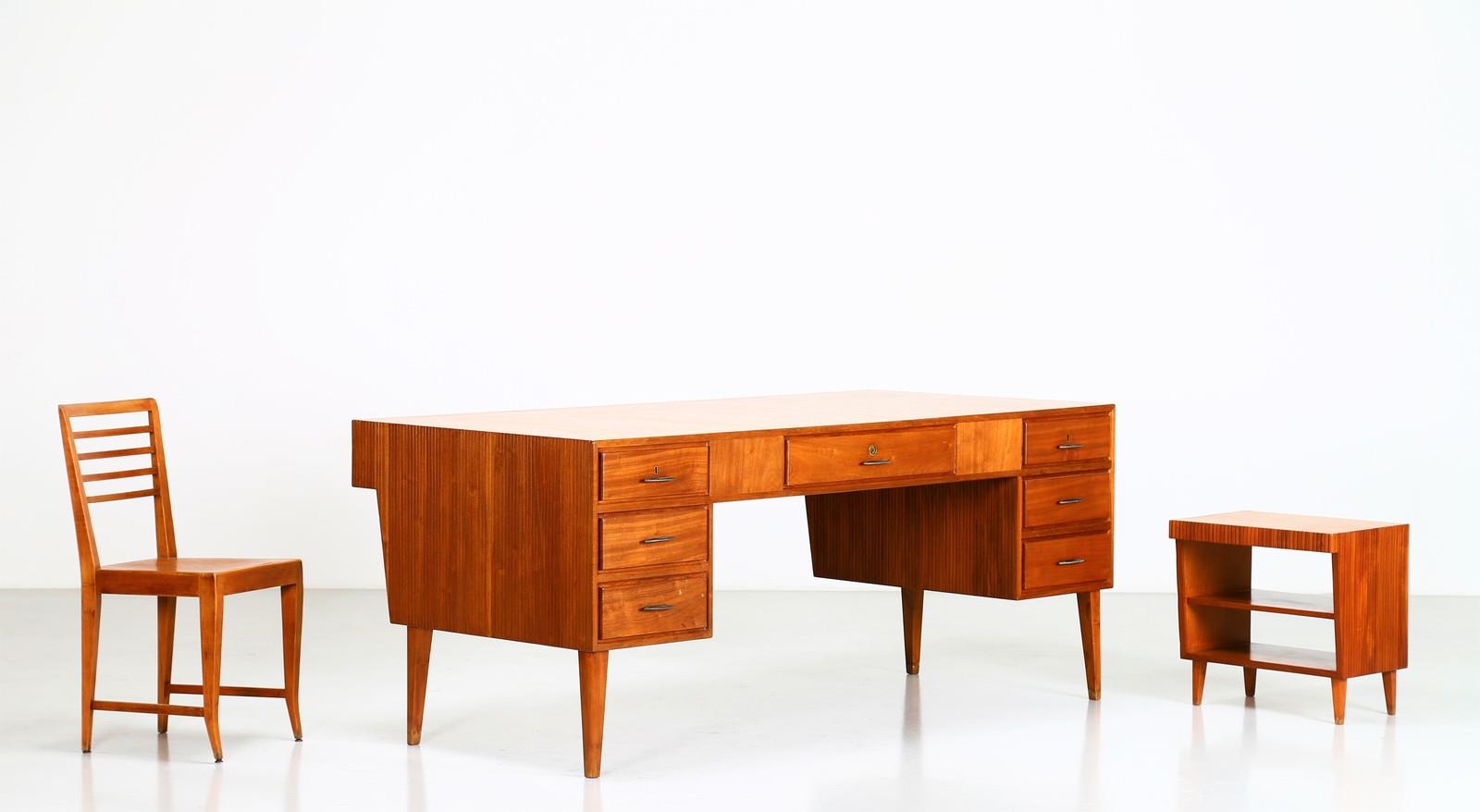PONTI GIO' (1891 - 1979) Scrivania, dattilo e sedia in legno grissinato, per...